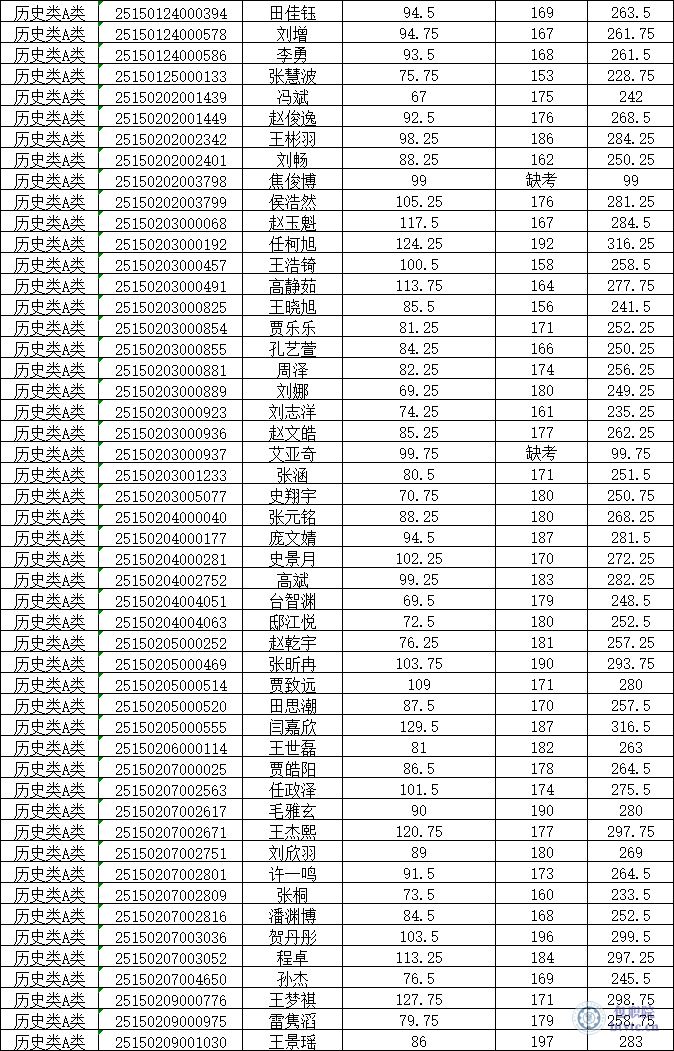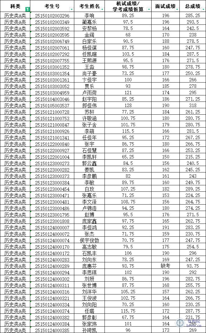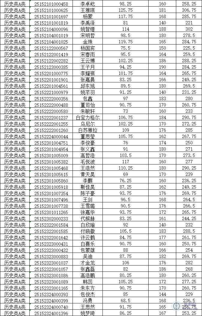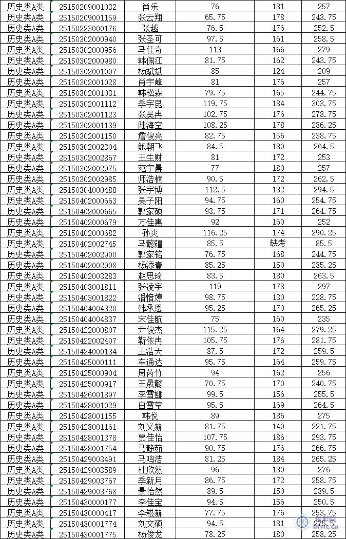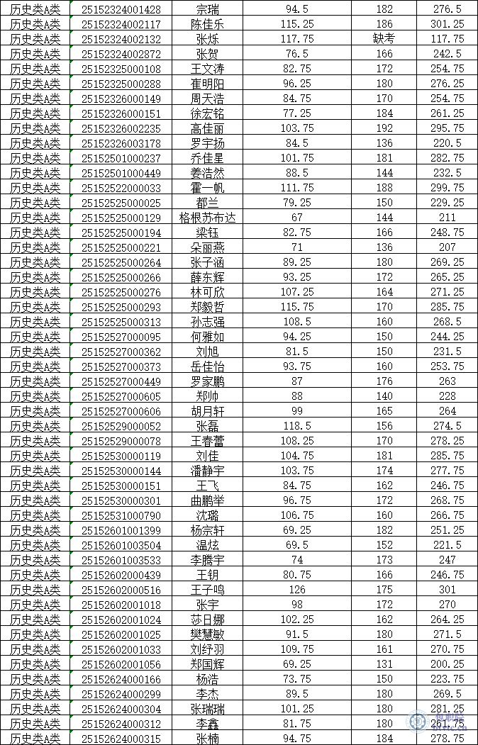 1.【历史类A类】2025年单独招生考试成绩公示