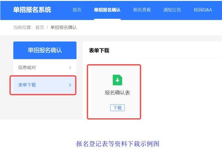 报名确认后,点击“表单下载”进行相关表项下载;(报考登记表)