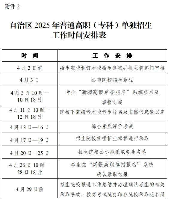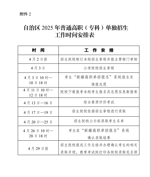 2.自治区2025年普通高职(专科)单独招生工作时