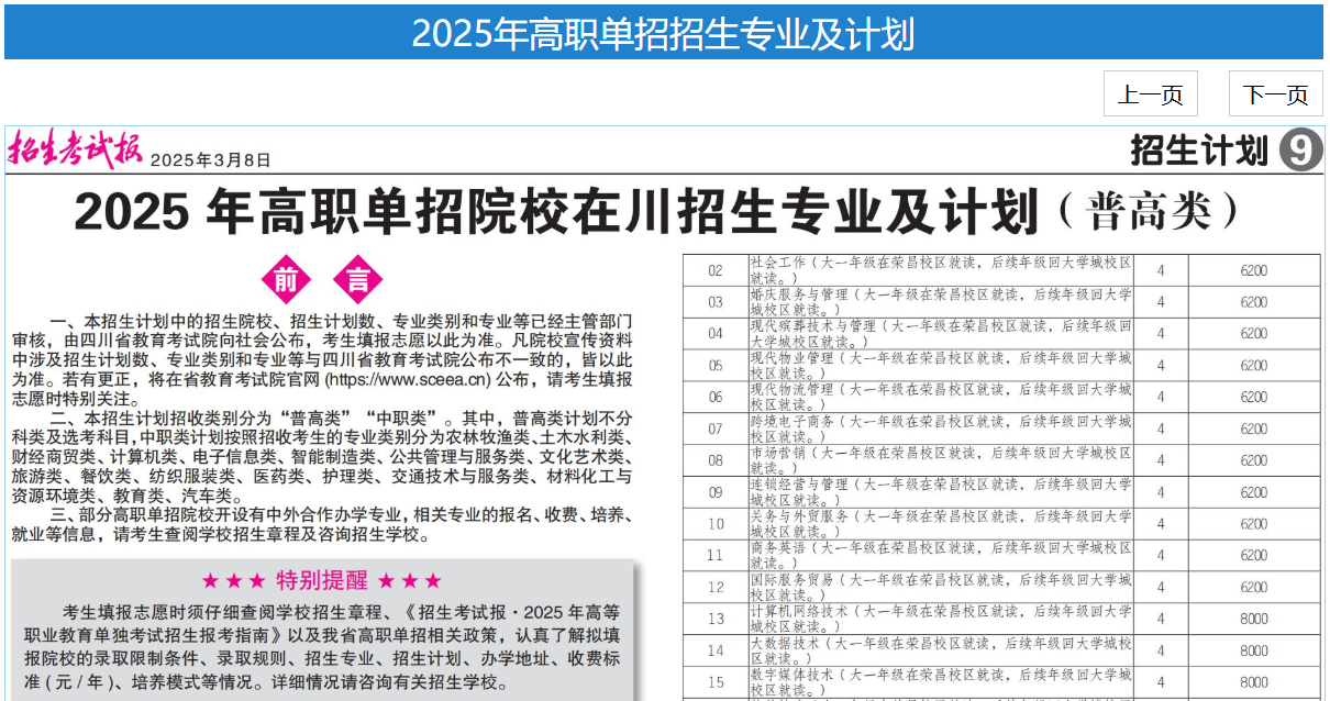 更多内容:四川省2025年高职单招招生专业及计划(点击查看)