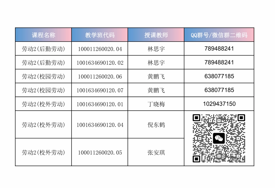 2024-2025学年第二学期《劳动2》课程QQ群号