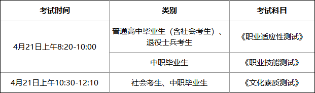 文化素质测试、职业适应性测试、职业技能测试时间为2025年4月21日,考场设在黄河交通学院东校区。