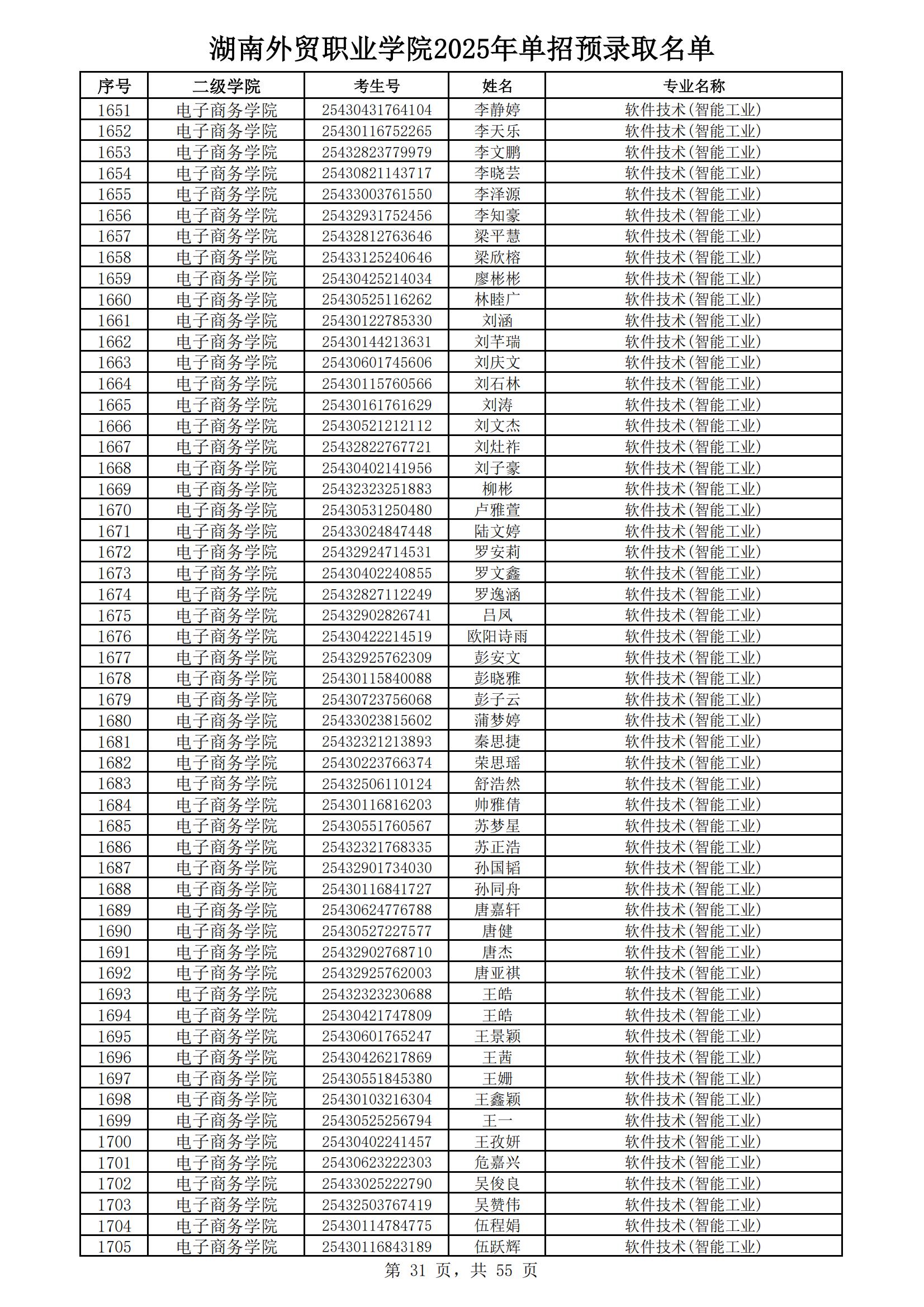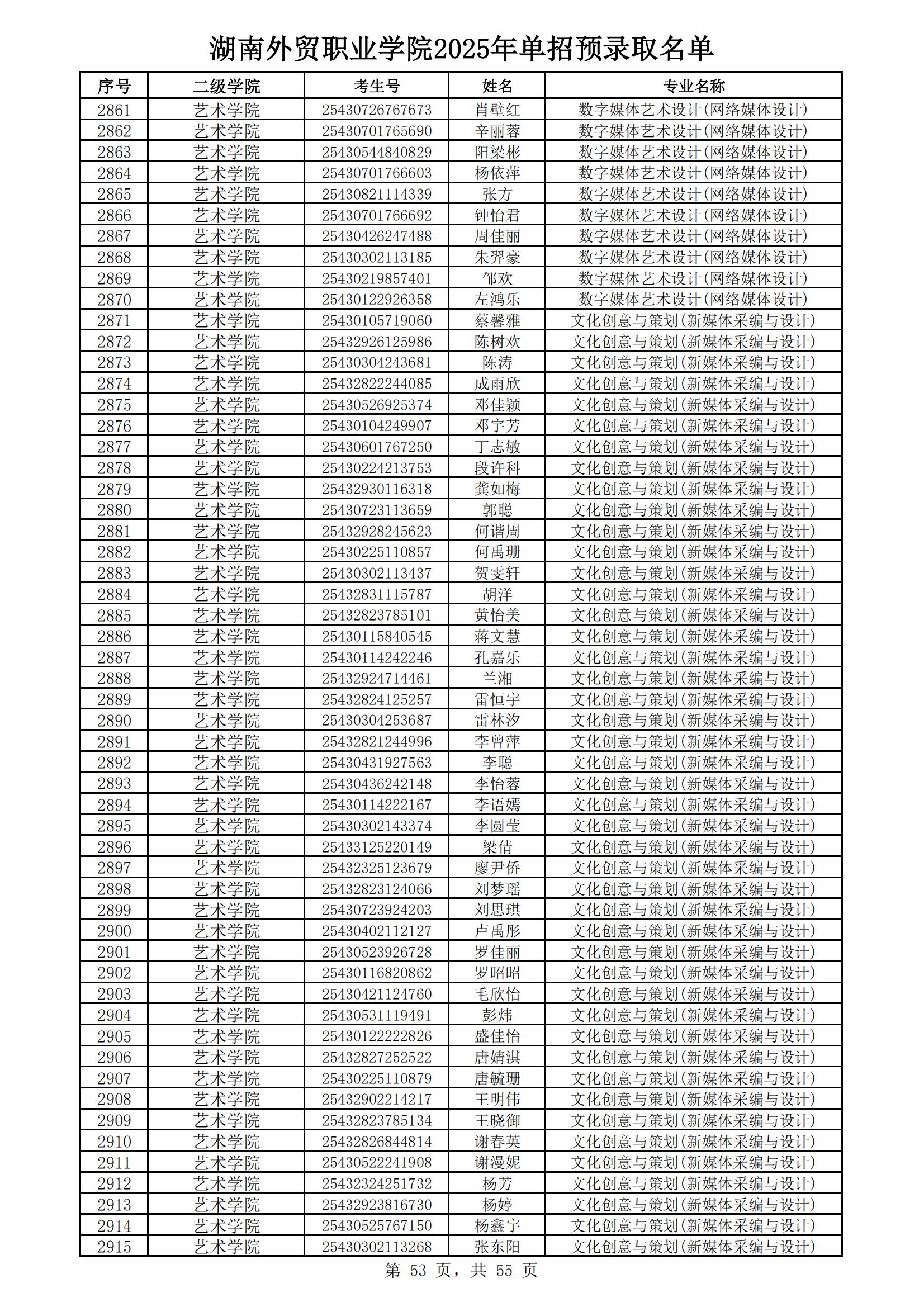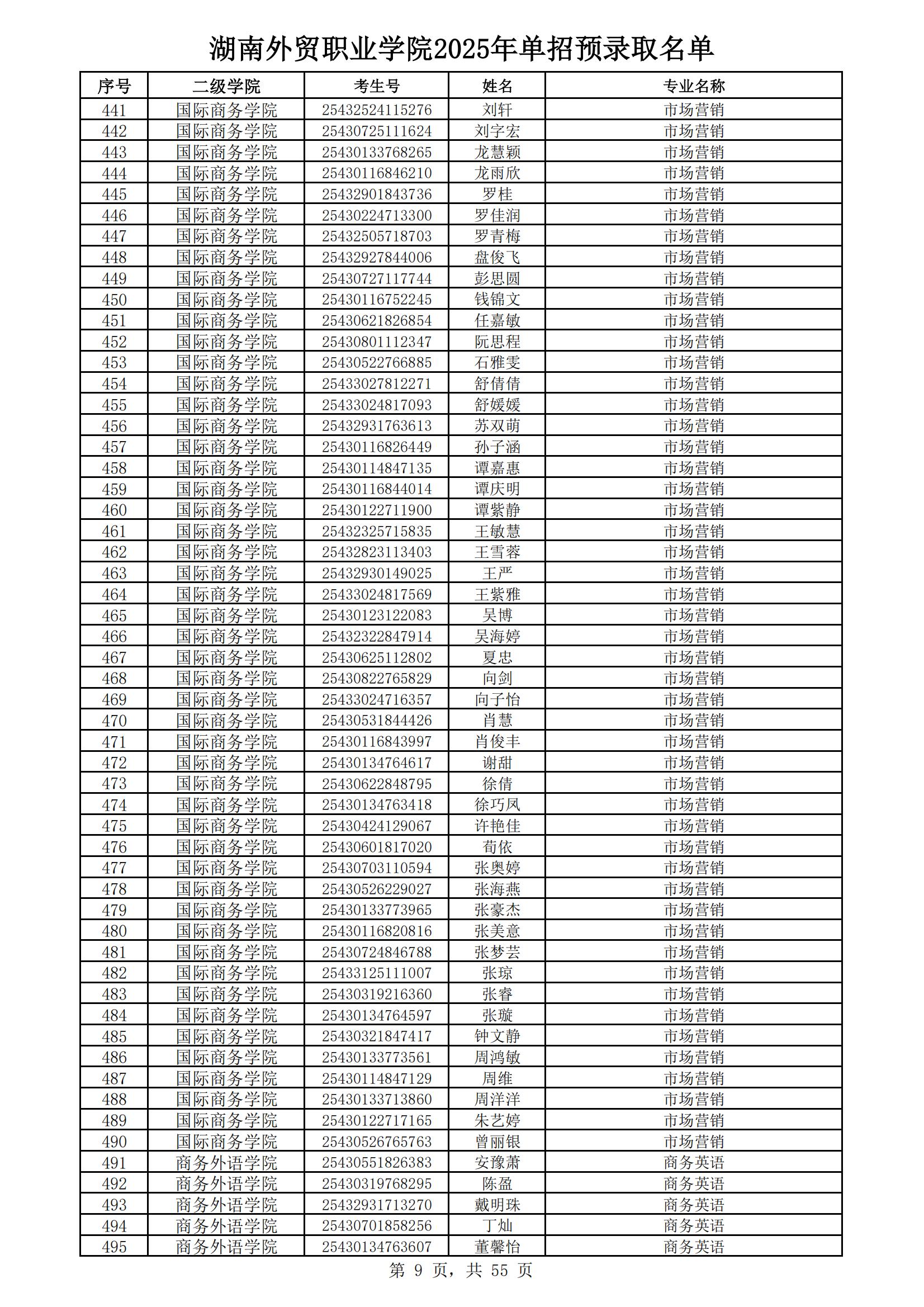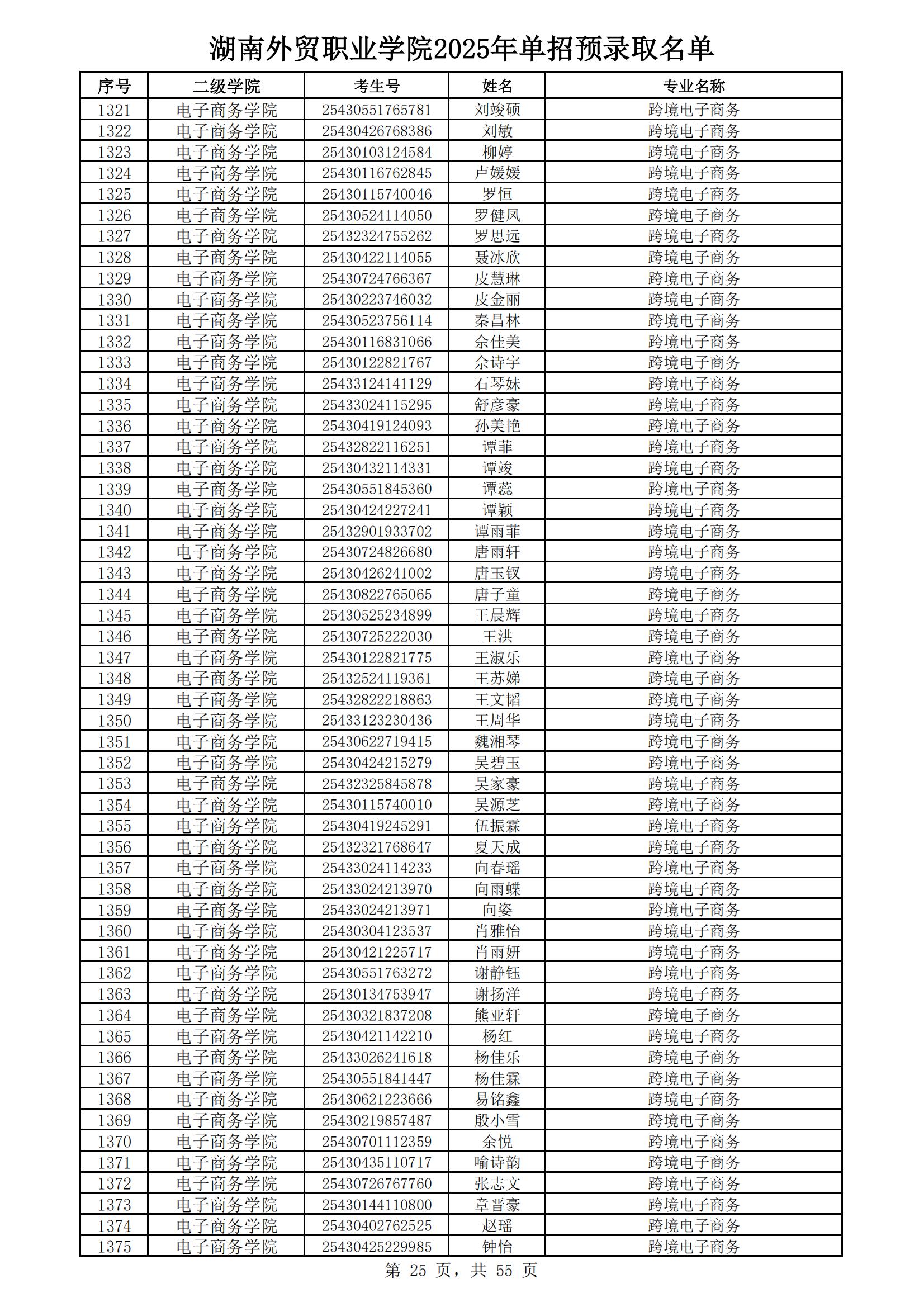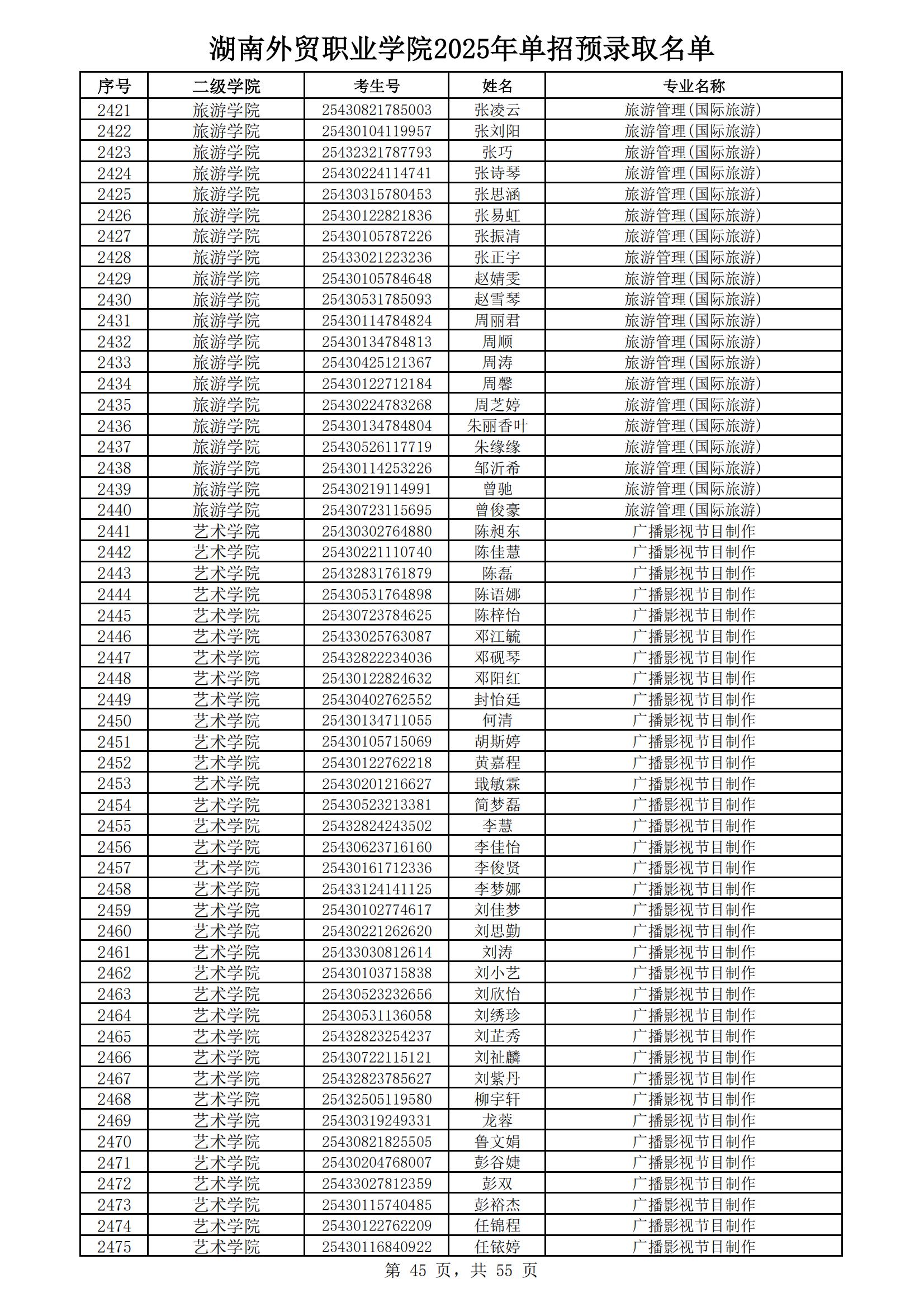 二、特别提示: 1、根据 2025年单招章程的规定,本次录取已完成全部招生计划,学校不再组织二志愿考生的考试和第二批次的录取。 2、我院2025年单招录取通知书预计将于4月底寄出,请考生关注我院招生信息网发布的相关信息。不要轻信校外机构及个人发布的各类招生宣传信息。 3、招生咨询电话:0731-88131755、88131756、88131757