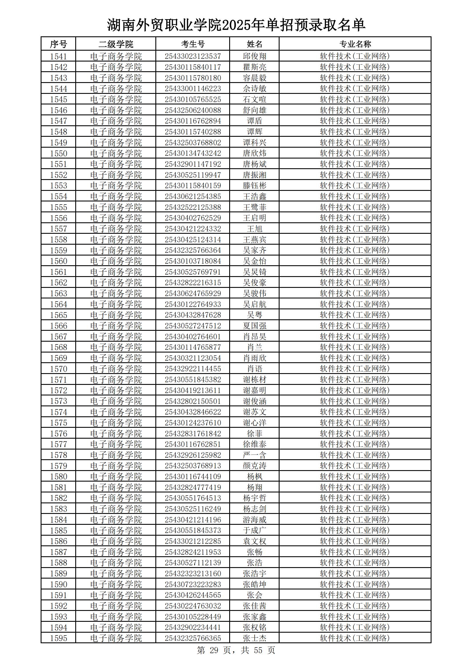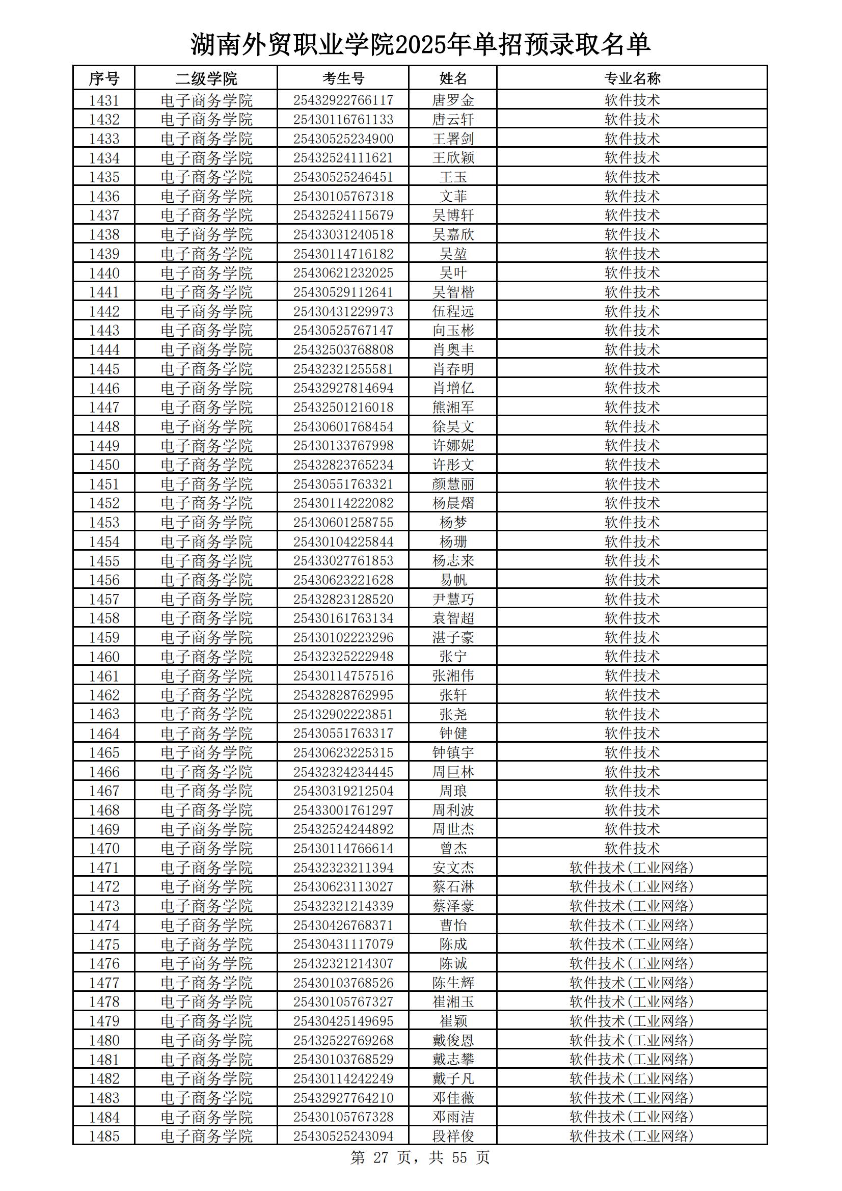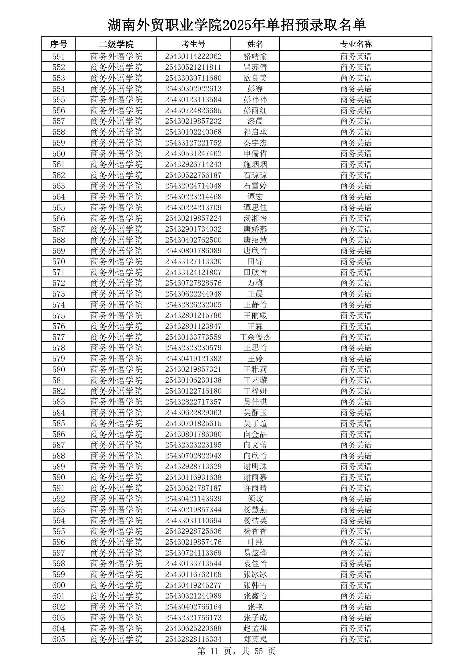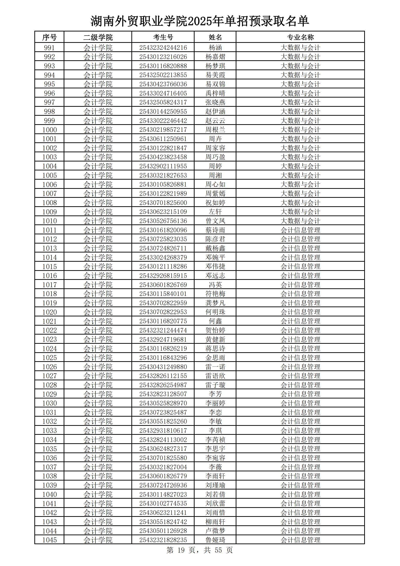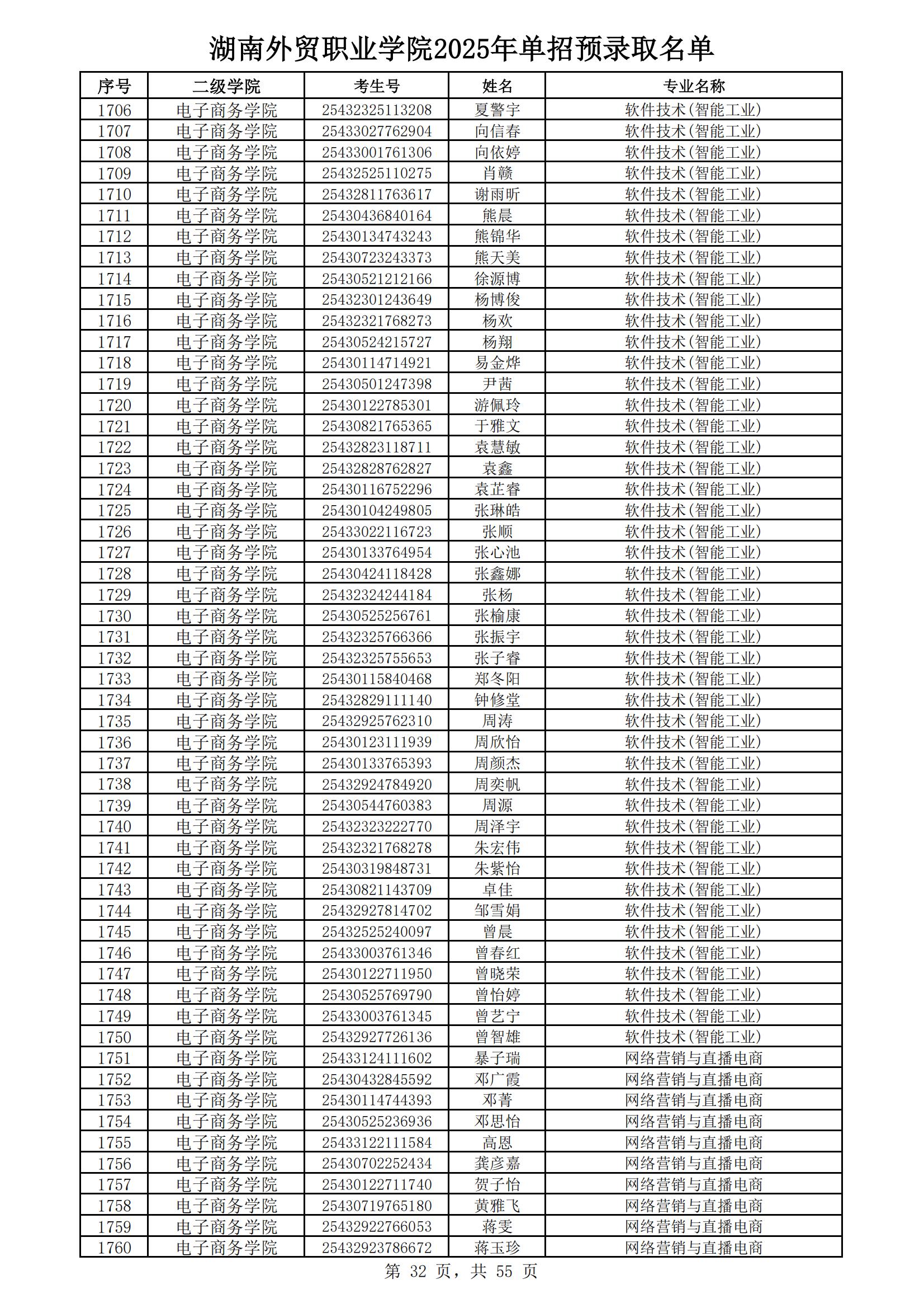 二、特别提示: 1、根据 2025年单招章程的规定,本次录取已完成全部招生计划,学校不再组织二志愿考生的考试和第二批次的录取。 2、我院2025年单招录取通知书预计将于4月底寄出,请考生关注我院招生信息网发布的相关信息。不要轻信校外机构及个人发布的各类招生宣传信息。 3、招生咨询电话:0731-88131755、88131756、88131757