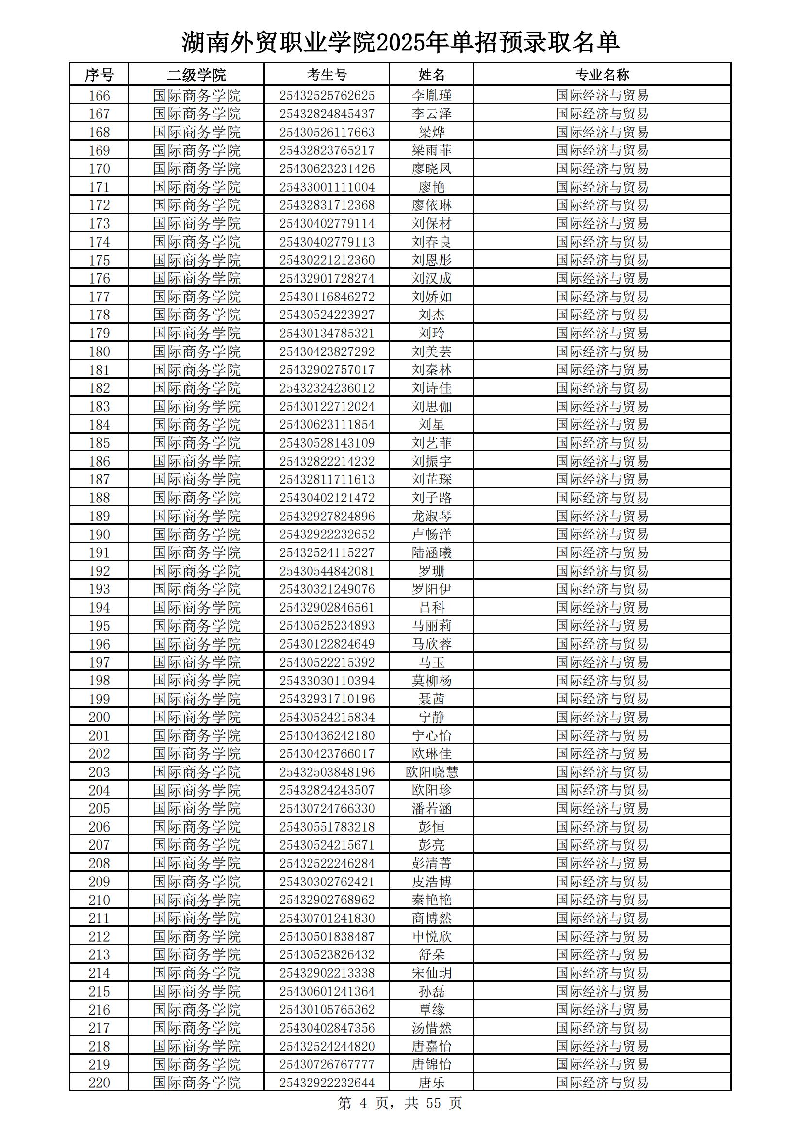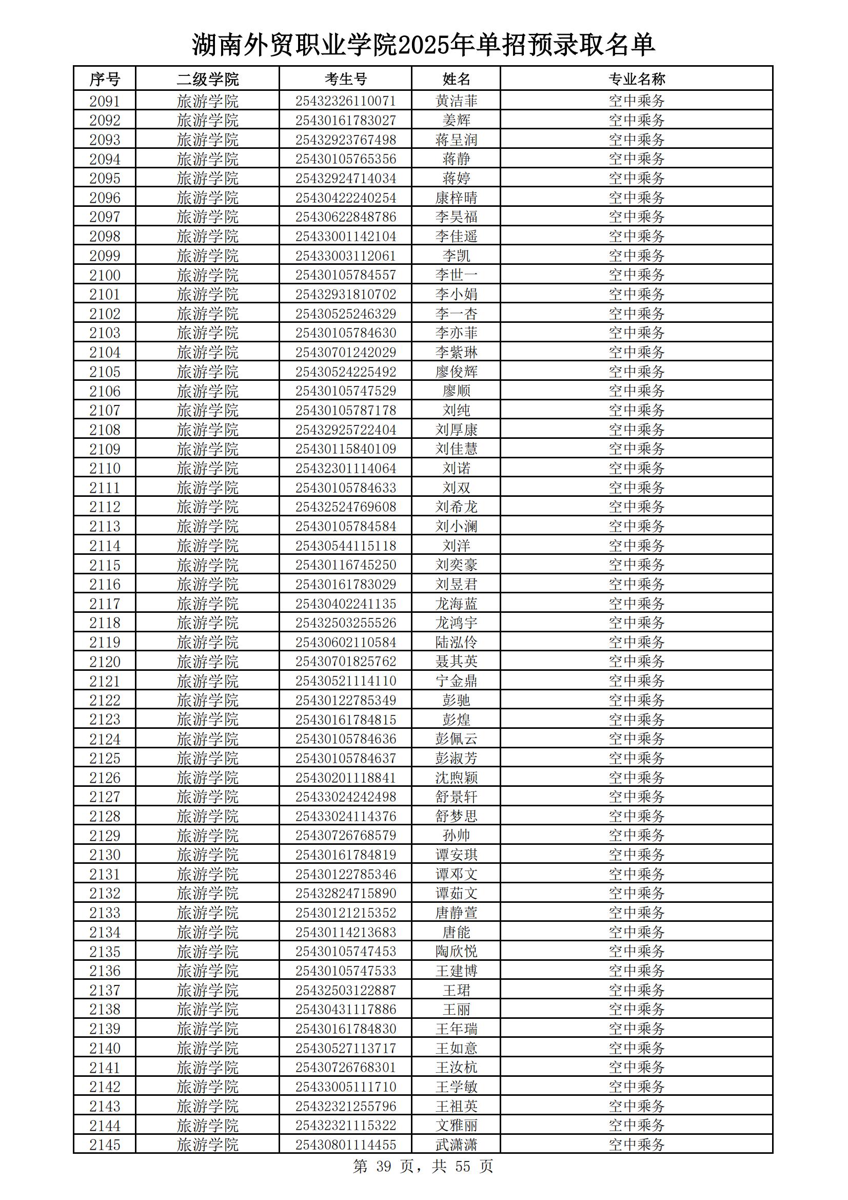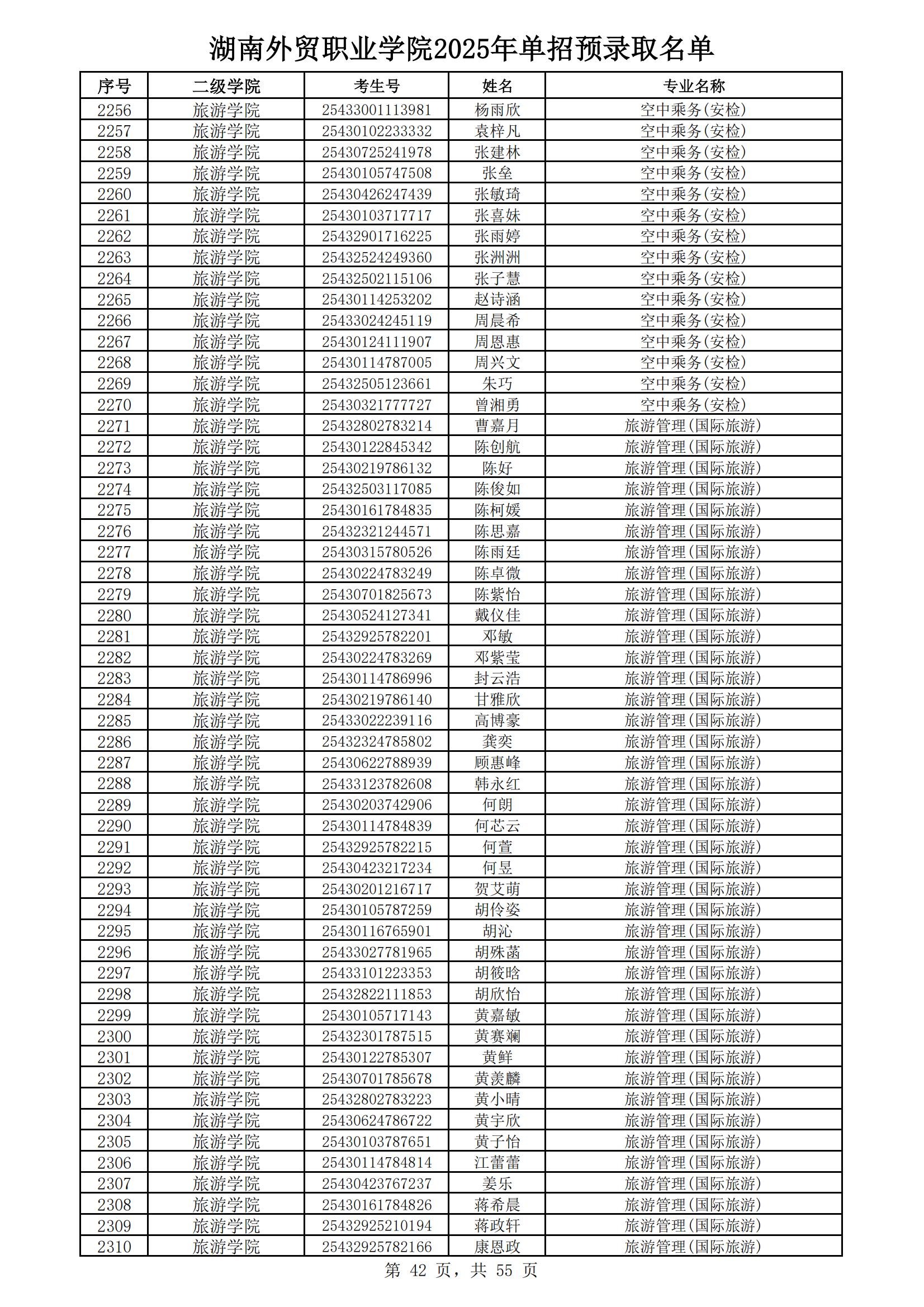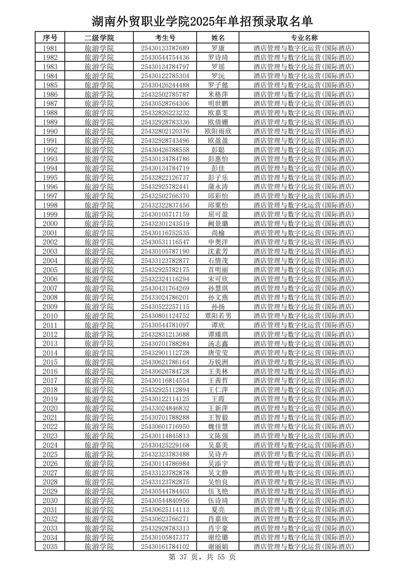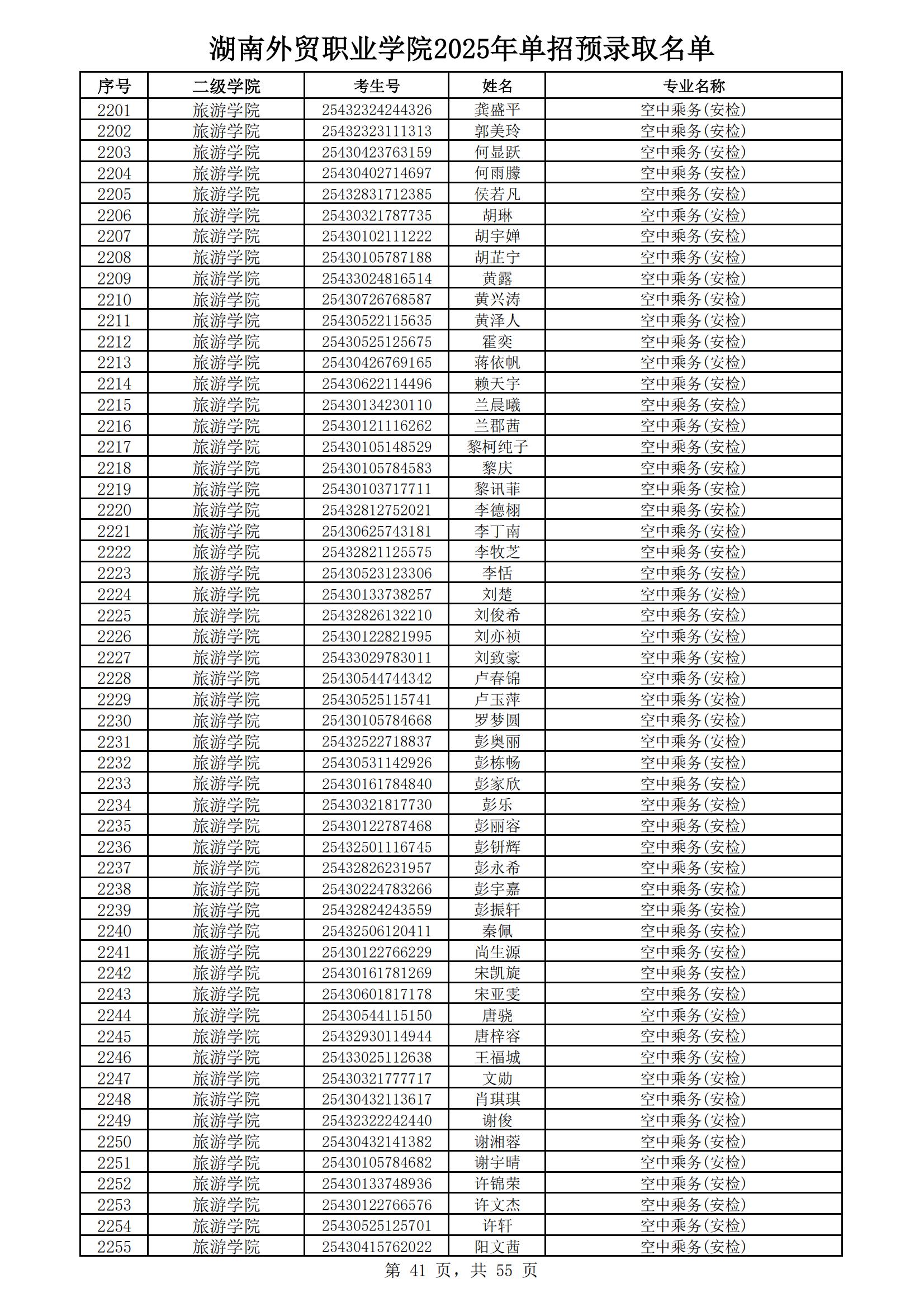 二、特别提示: 1、根据 2025年单招章程的规定,本次录取已完成全部招生计划,学校不再组织二志愿考生的考试和第二批次的录取。 2、我院2025年单招录取通知书预计将于4月底寄出,请考生关注我院招生信息网发布的相关信息。不要轻信校外机构及个人发布的各类招生宣传信息。 3、招生咨询电话:0731-88131755、88131756、88131757