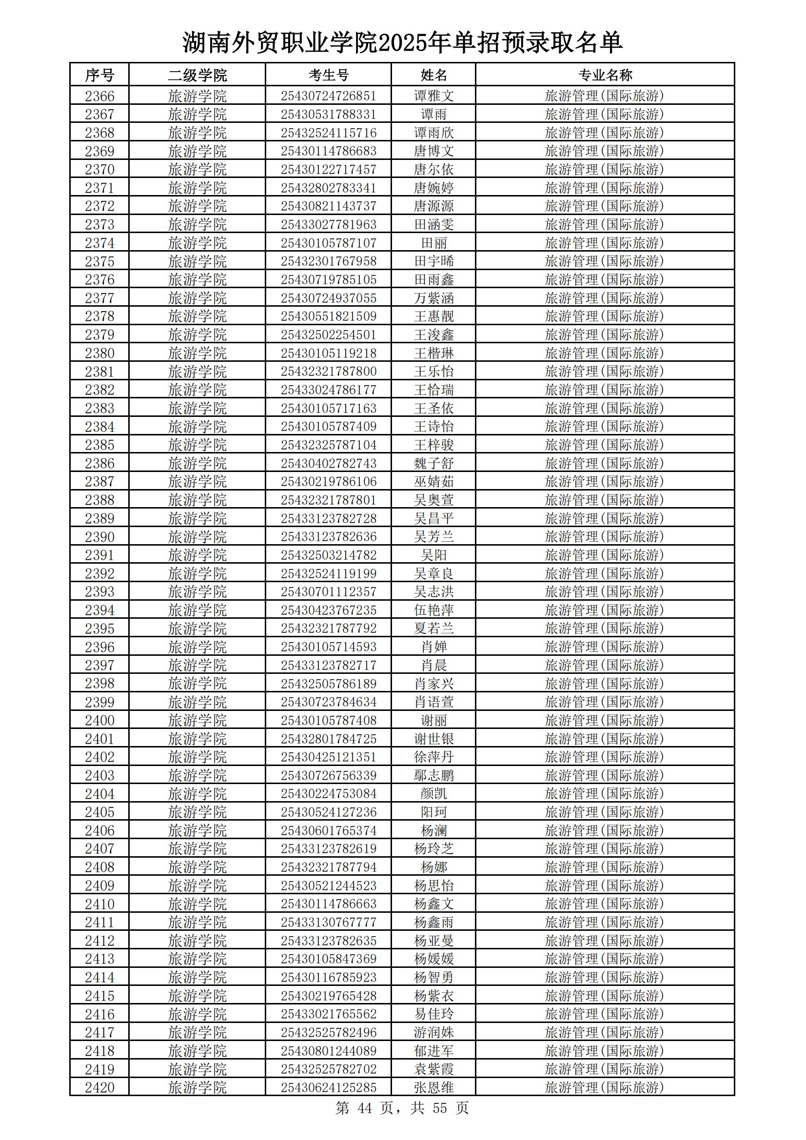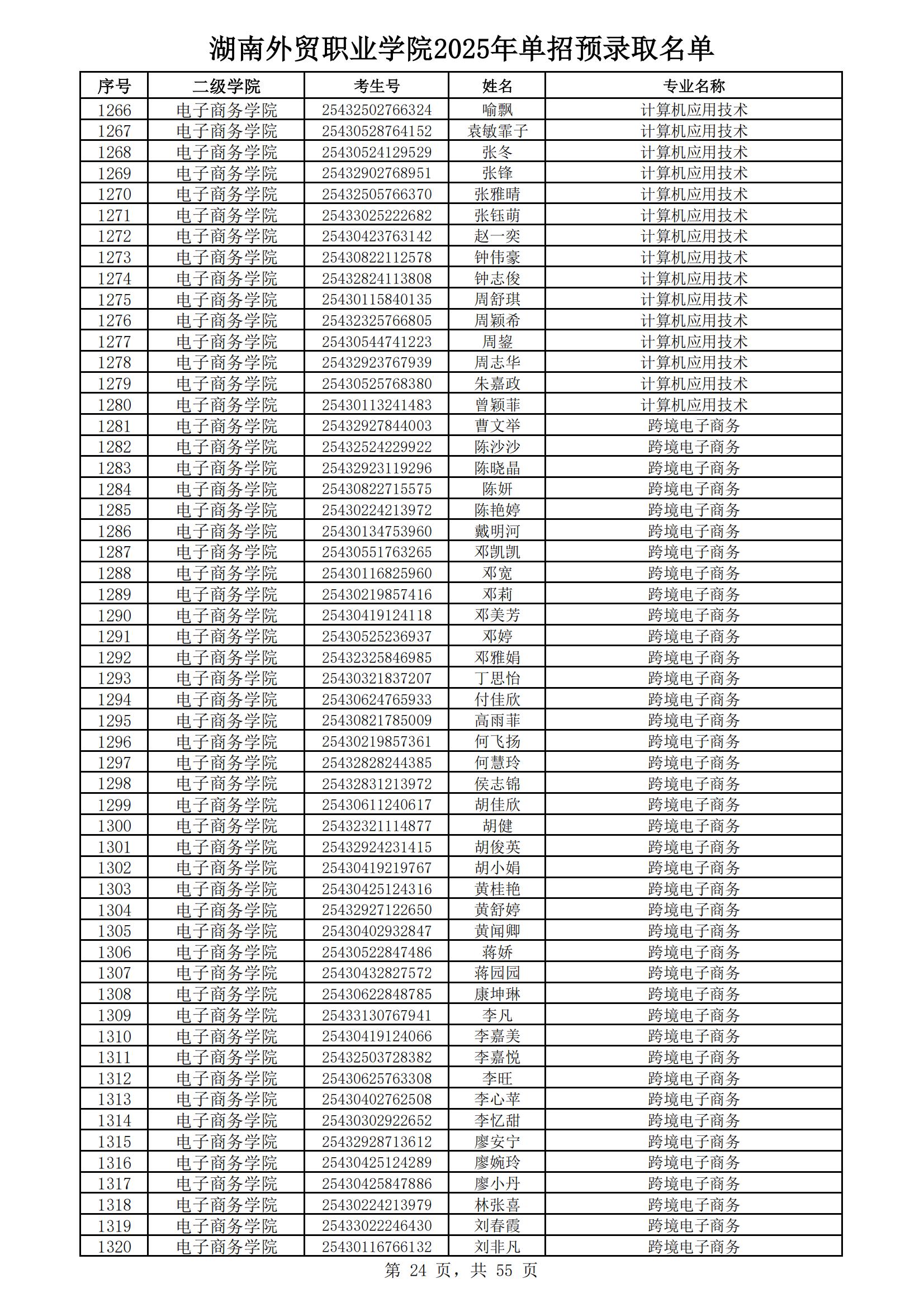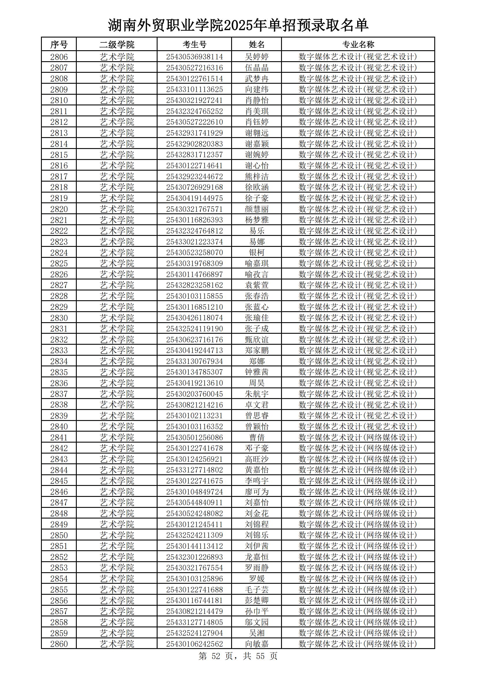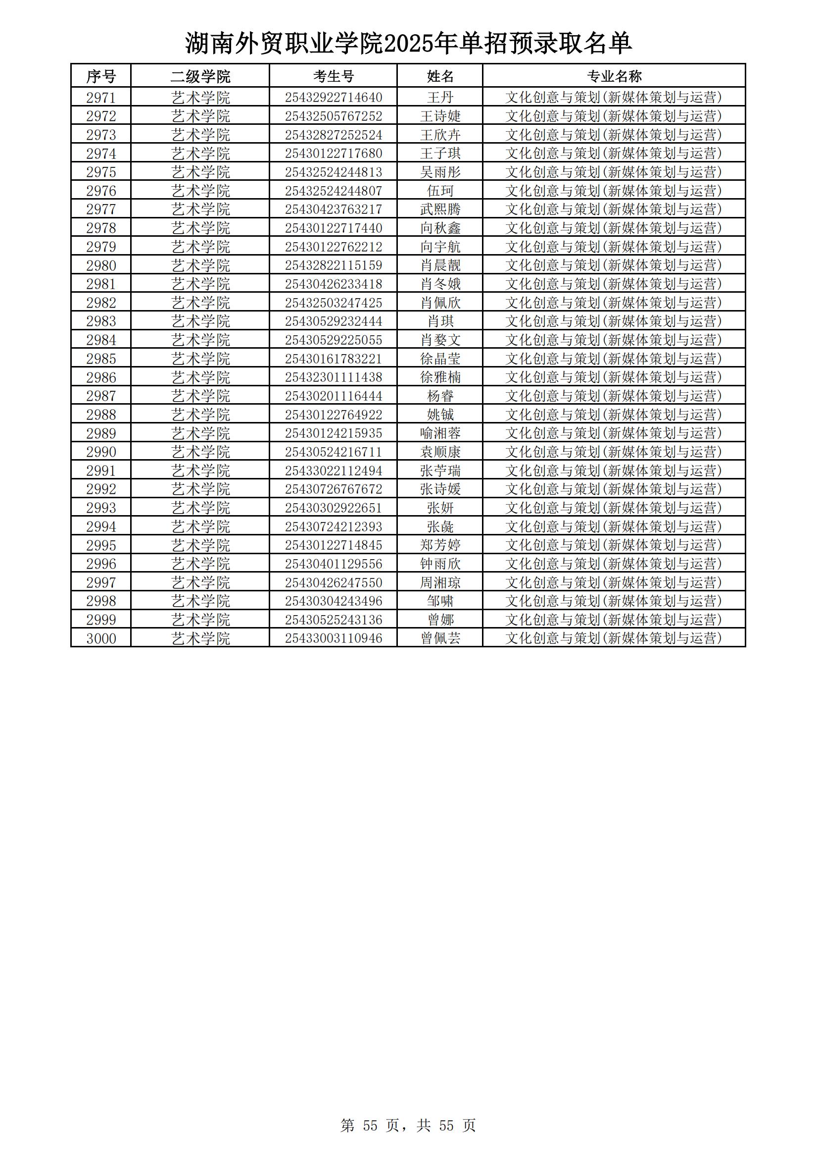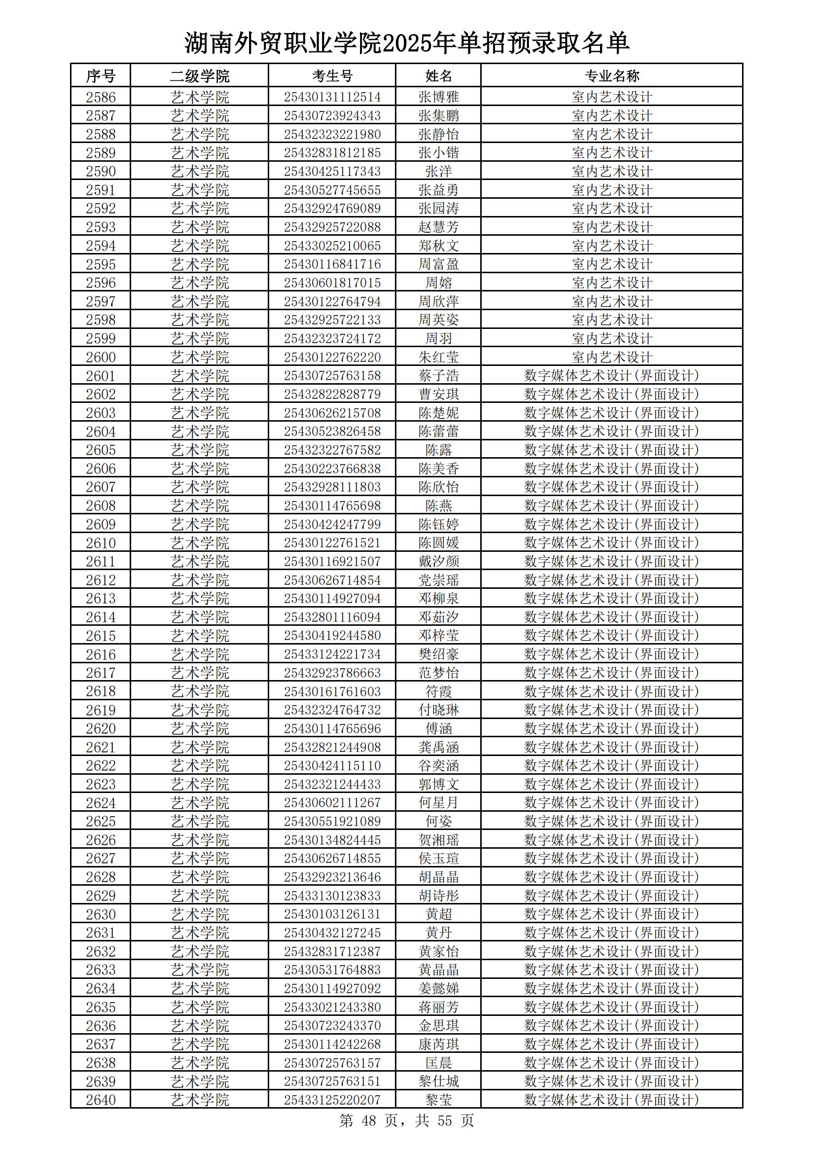 二、特别提示: 1、根据 2025年单招章程的规定,本次录取已完成全部招生计划,学校不再组织二志愿考生的考试和第二批次的录取。 2、我院2025年单招录取通知书预计将于4月底寄出,请考生关注我院招生信息网发布的相关信息。不要轻信校外机构及个人发布的各类招生宣传信息。 3、招生咨询电话:0731-88131755、88131756、88131757
