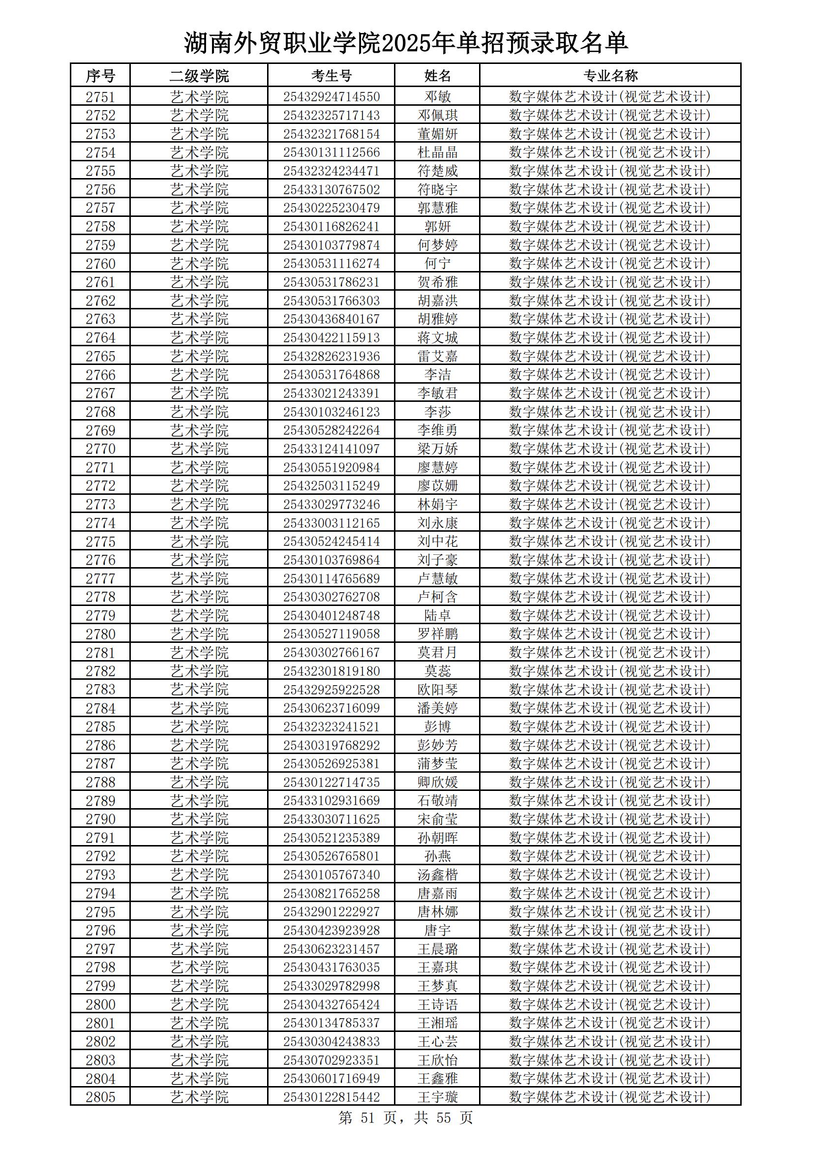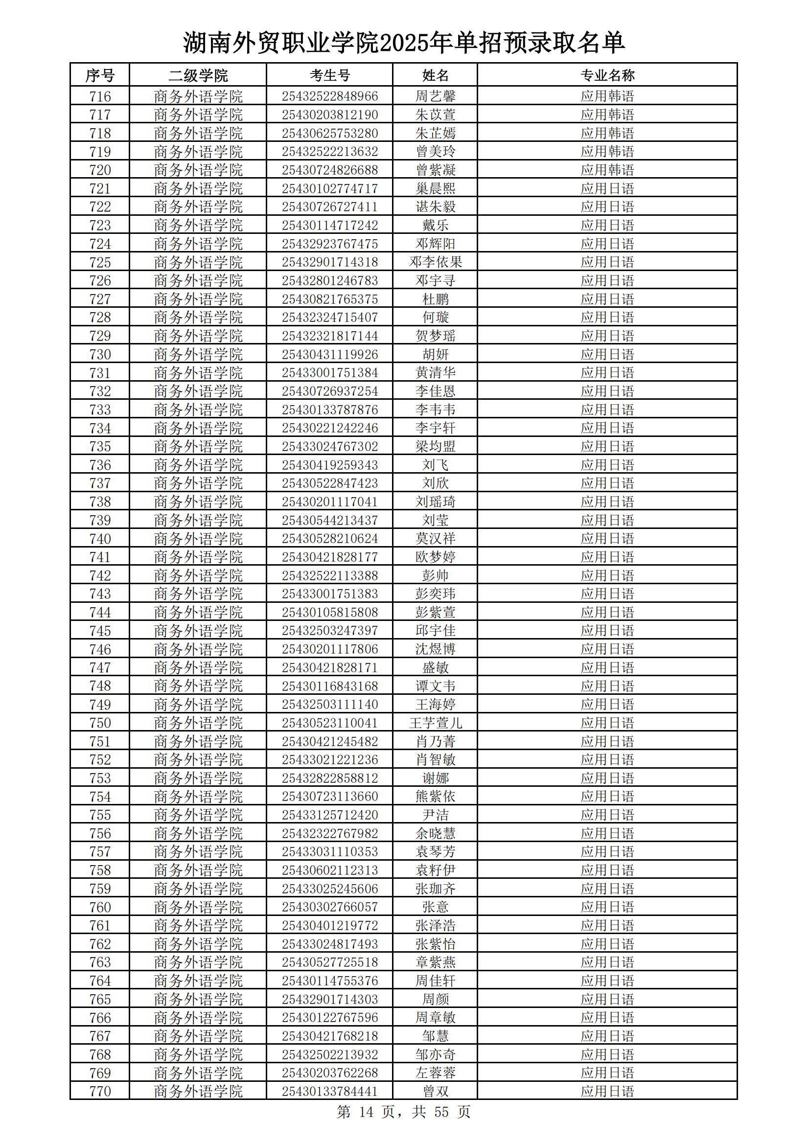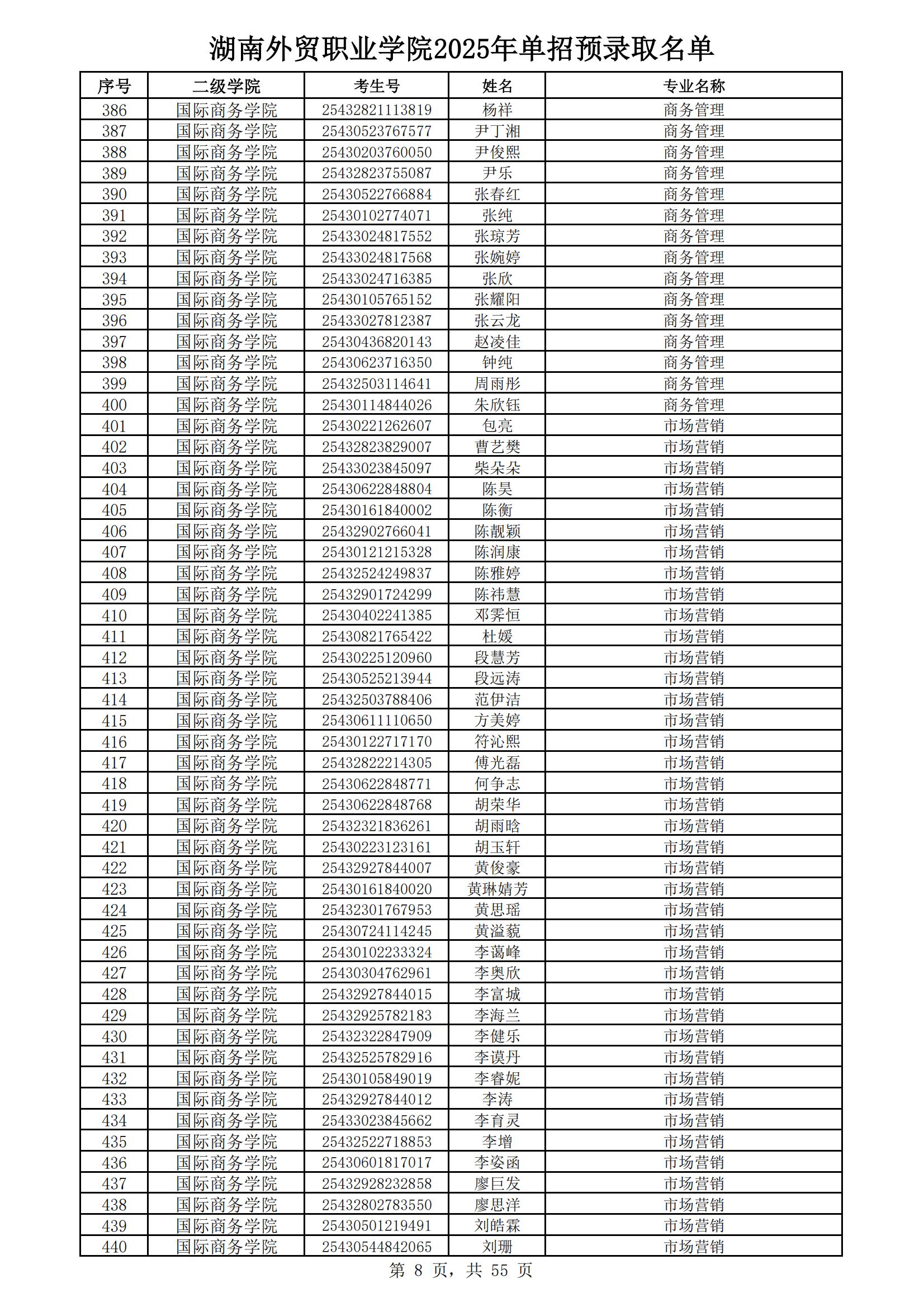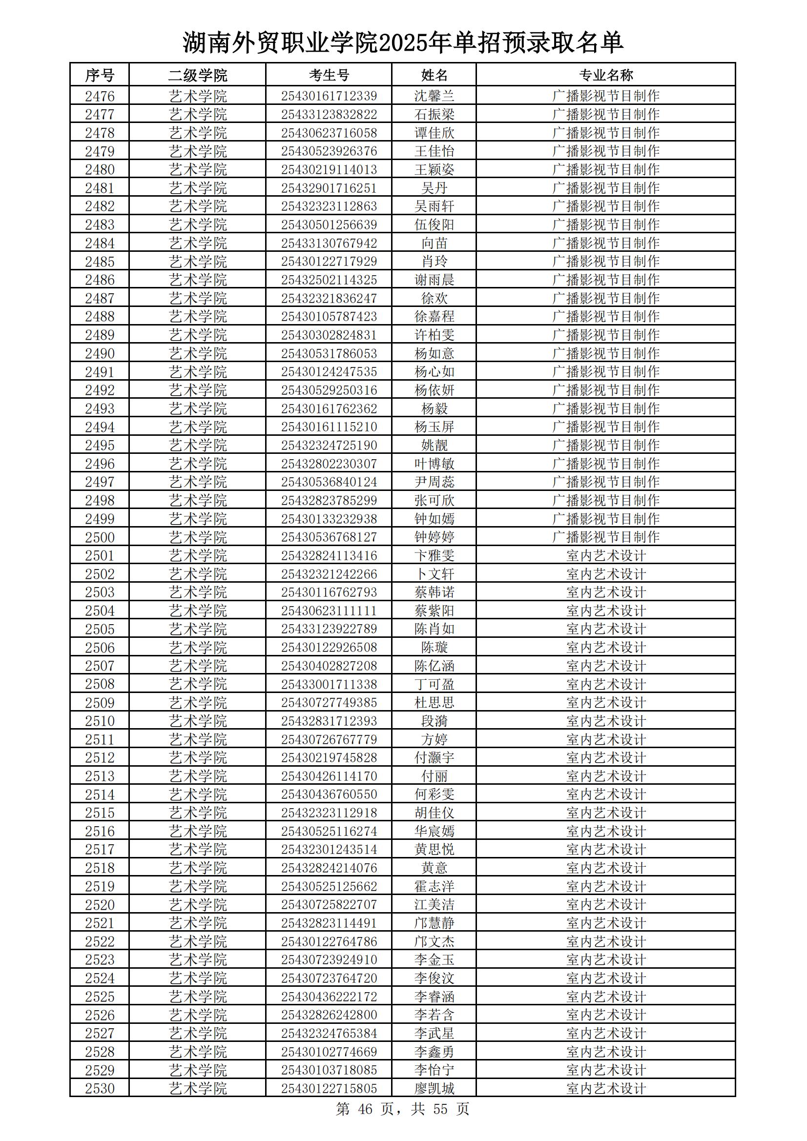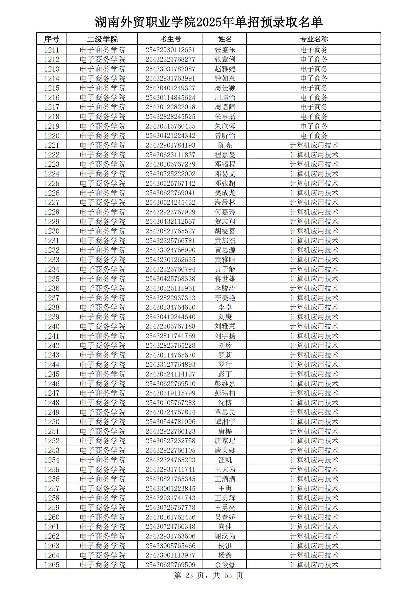 二、特别提示: 1、根据 2025年单招章程的规定,本次录取已完成全部招生计划,学校不再组织二志愿考生的考试和第二批次的录取。 2、我院2025年单招录取通知书预计将于4月底寄出,请考生关注我院招生信息网发布的相关信息。不要轻信校外机构及个人发布的各类招生宣传信息。 3、招生咨询电话:0731-88131755、88131756、88131757