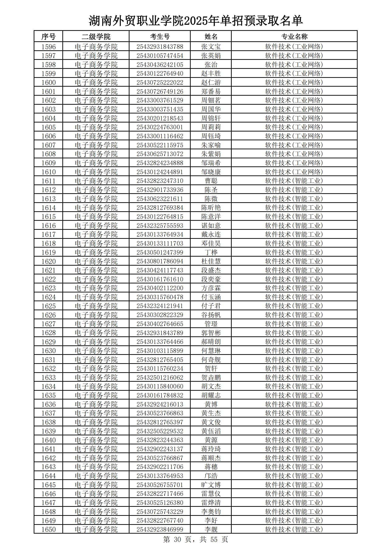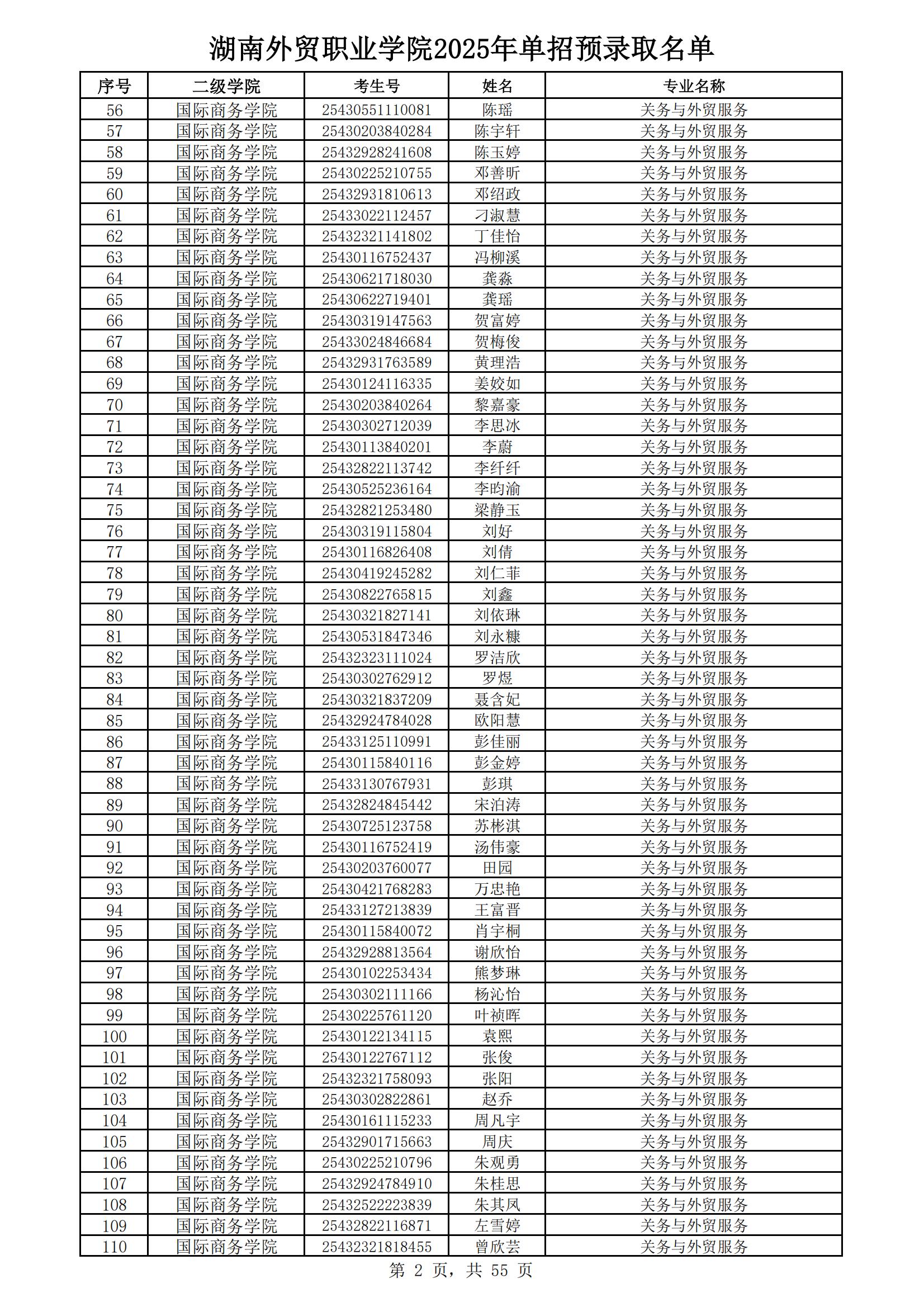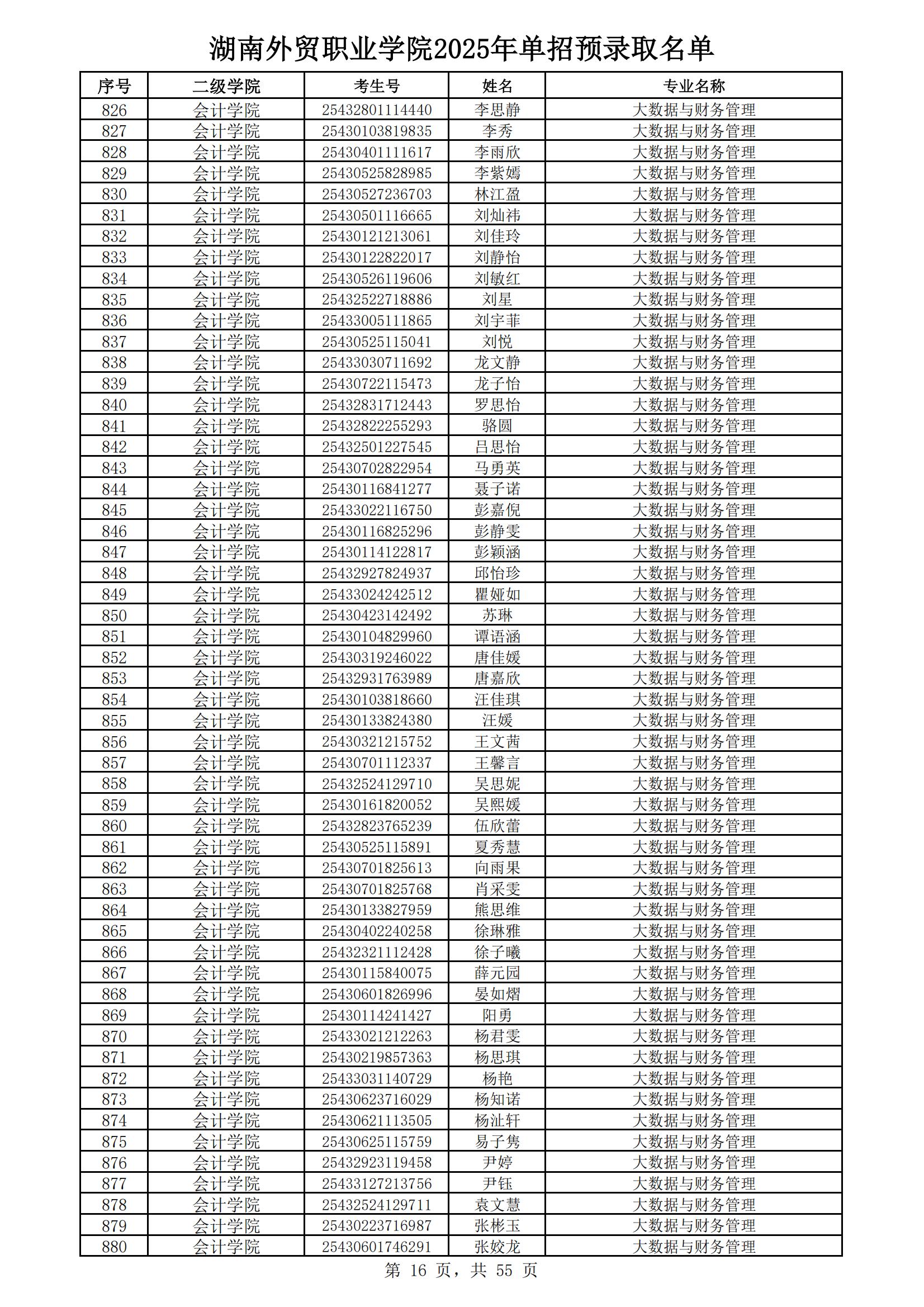 (2)预录取名单(名单首先依据单招拟录取专业所属二级学院排列,然后同专业内按考生姓名首字母升序排列。)