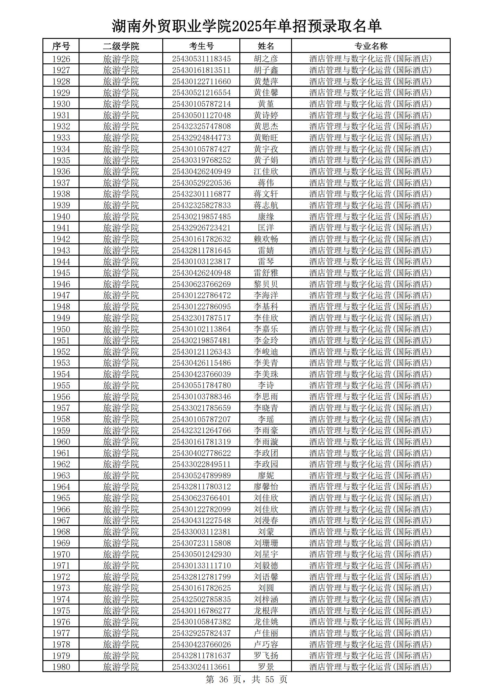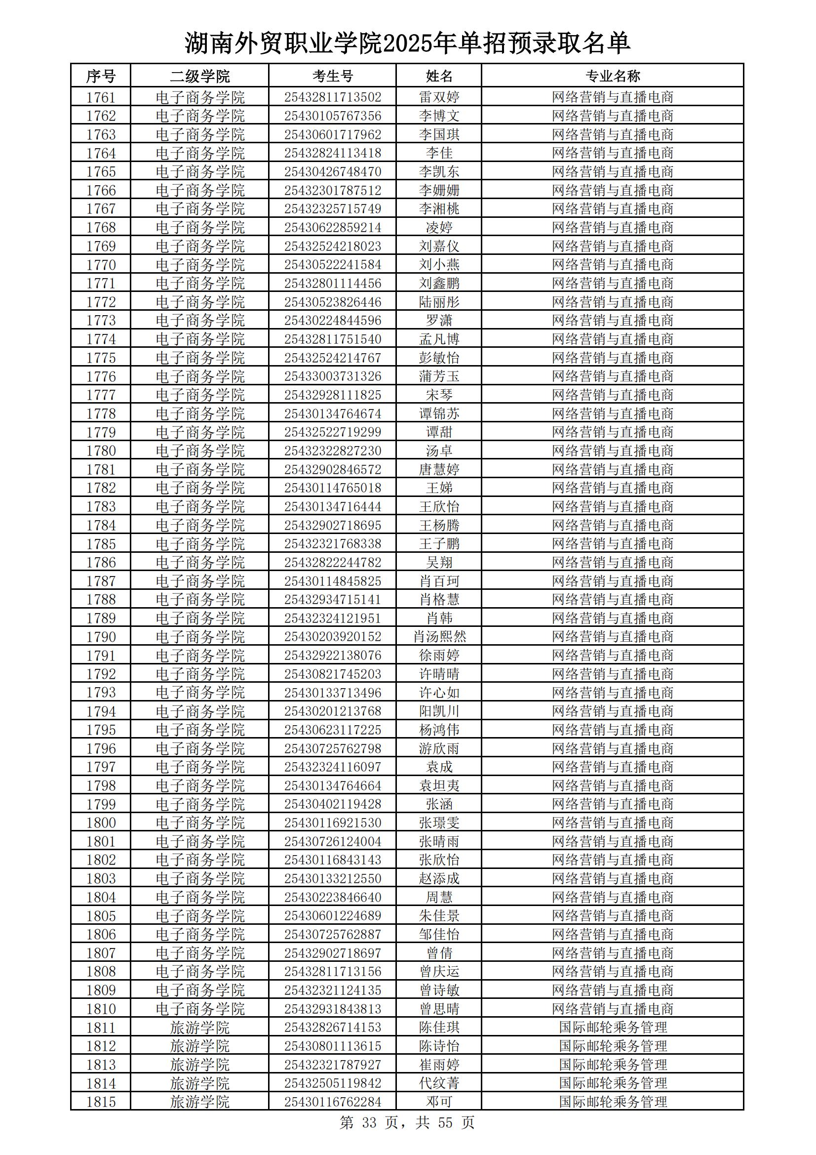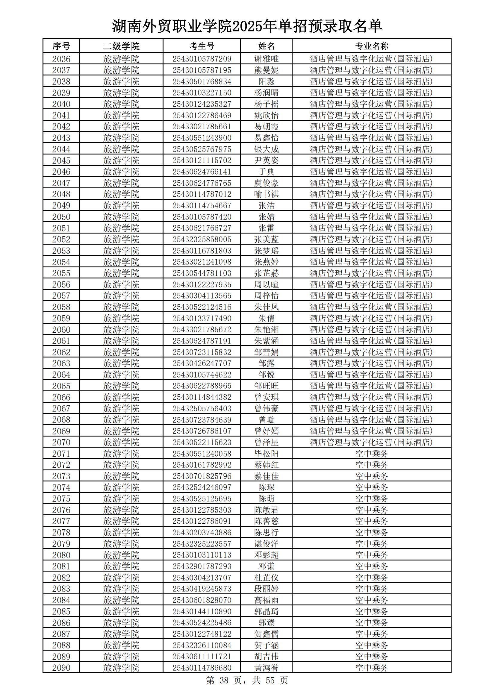 (2)预录取名单(名单首先依据单招拟录取专业所属二级学院排列,然后同专业内按考生姓名首字母升序排列。)