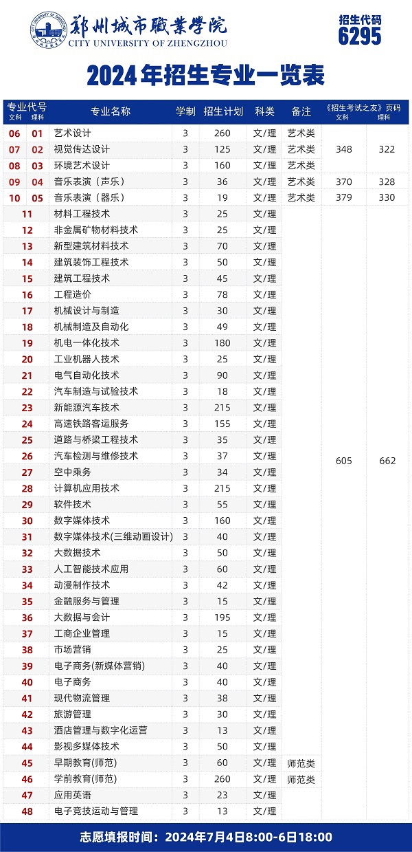 2024年普通类、艺术类招生专业一览表