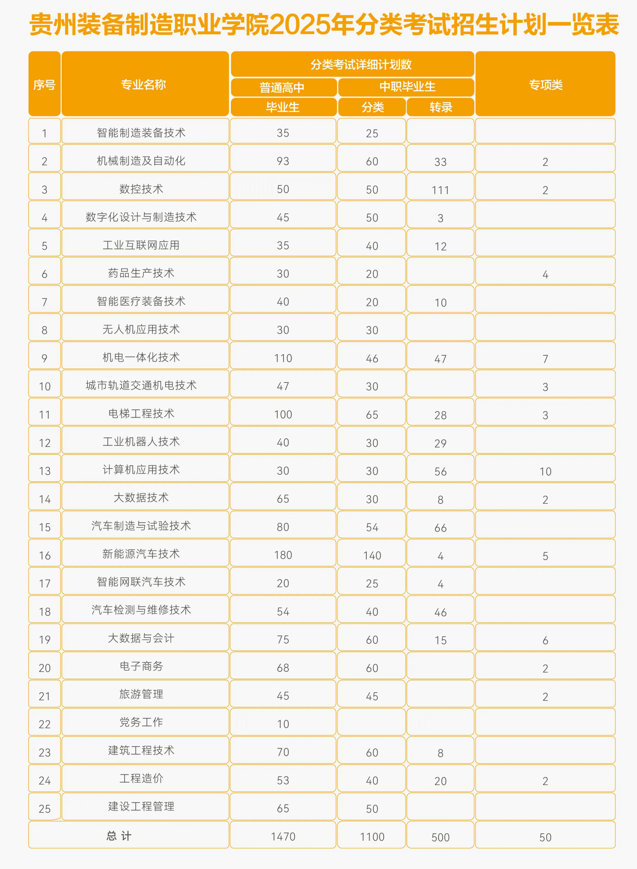 贵州装备制造职业学院2025年分类考试招生计划