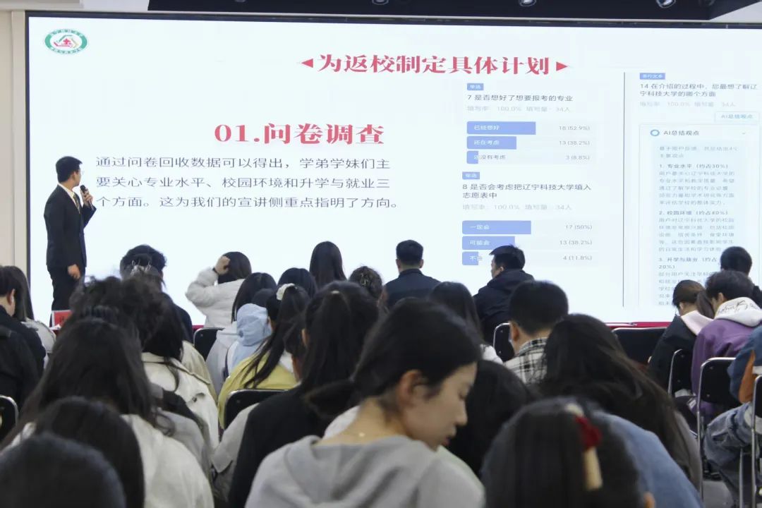 活动中,辽科大的学子们以饱满的热情和多样的方式开展宣讲。各实践团队通过分享学习经历和生活感受,向学弟学妹们展示了大学生活的丰富多彩,并详细解答了他们在学习、生活、社团活动等方面的疑问,为他们未来的专业选择和职业发展规划提供了中肯的参考和建议。