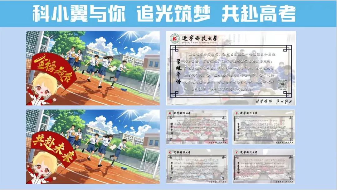 辽科大美丽的校园景色、丰富多彩的校园活动、学长学姐的点滴分享,都让我对未来的大学生活充满了更多期待,也更加坚定自己的目标。在接下来的日子里,我会以更加饱满的热情和坚定的信念投入到学习中,争取考上理想的大学!