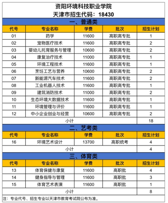 2024年资阳环境科技职业学院天津招生计划出炉!