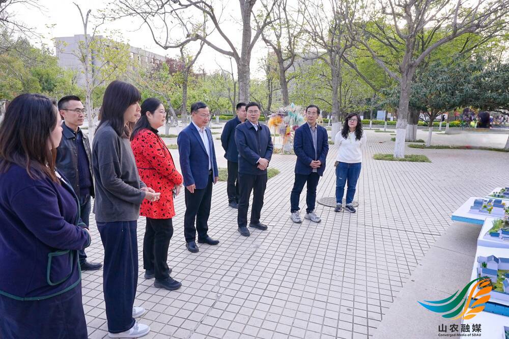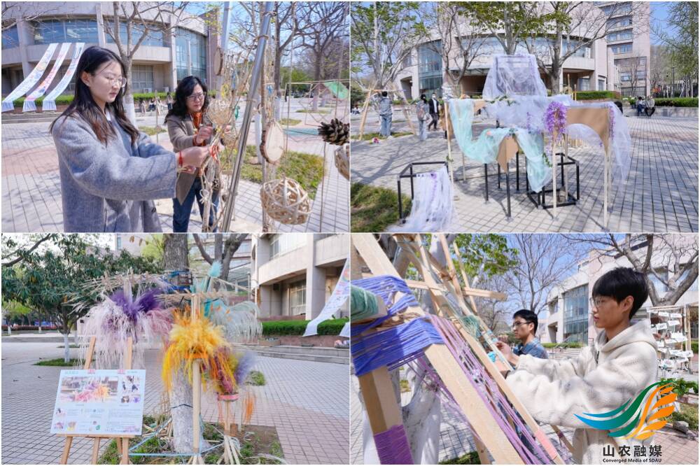 山农融媒4月8日讯4月3日以来,艺术学院第五届空间建构创意展在岱宗校区文理大楼前展出。4月7日下午,党委副书记、校长冷畅俭,党委常委、副校长李广松到展出现场参观指导。