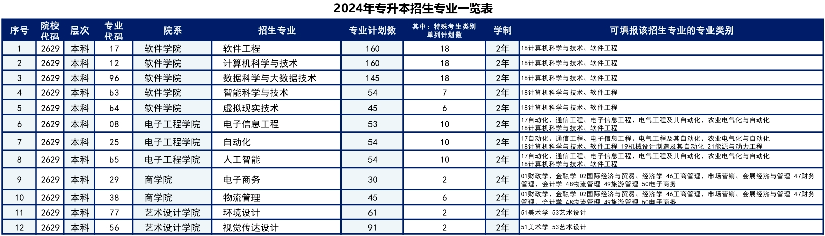 五年一贯制及二年制专科学生升学后学制三年,三年制专科学生升学后学制二年,具体以教育部学籍信息为准。注:1.具体招生专业及招生计划以黑龙江省教育主管部门审核、公布为准。学校根据黑龙江省物价部门有关规定收到学费、住宿费。2.2024年专升本学生,在哈东校区报到、学习、生活,学费按我校发布的2024年学费标准执行,住宿费按哈东校区住宿费标准执行。详见我校招生网站首页招生公告栏https://zsb.greathiit.com。3.所有专业均要求学生入学时自备笔记本电脑。各专业电脑配置详见我校招生网站首页招生公告栏https://zsb.greathiit.com。4.资助政策: 国家奖学金、国家励志奖学金、国家助学金、校内奖学金;学校协助家庭经济困难学生办理在校期间免息的生源地信用助学贷款;学校还为家庭经济困难学生提供校内勤工俭学岗位。咨询热线:0451-5860788818845631895郝老师(微信同号)