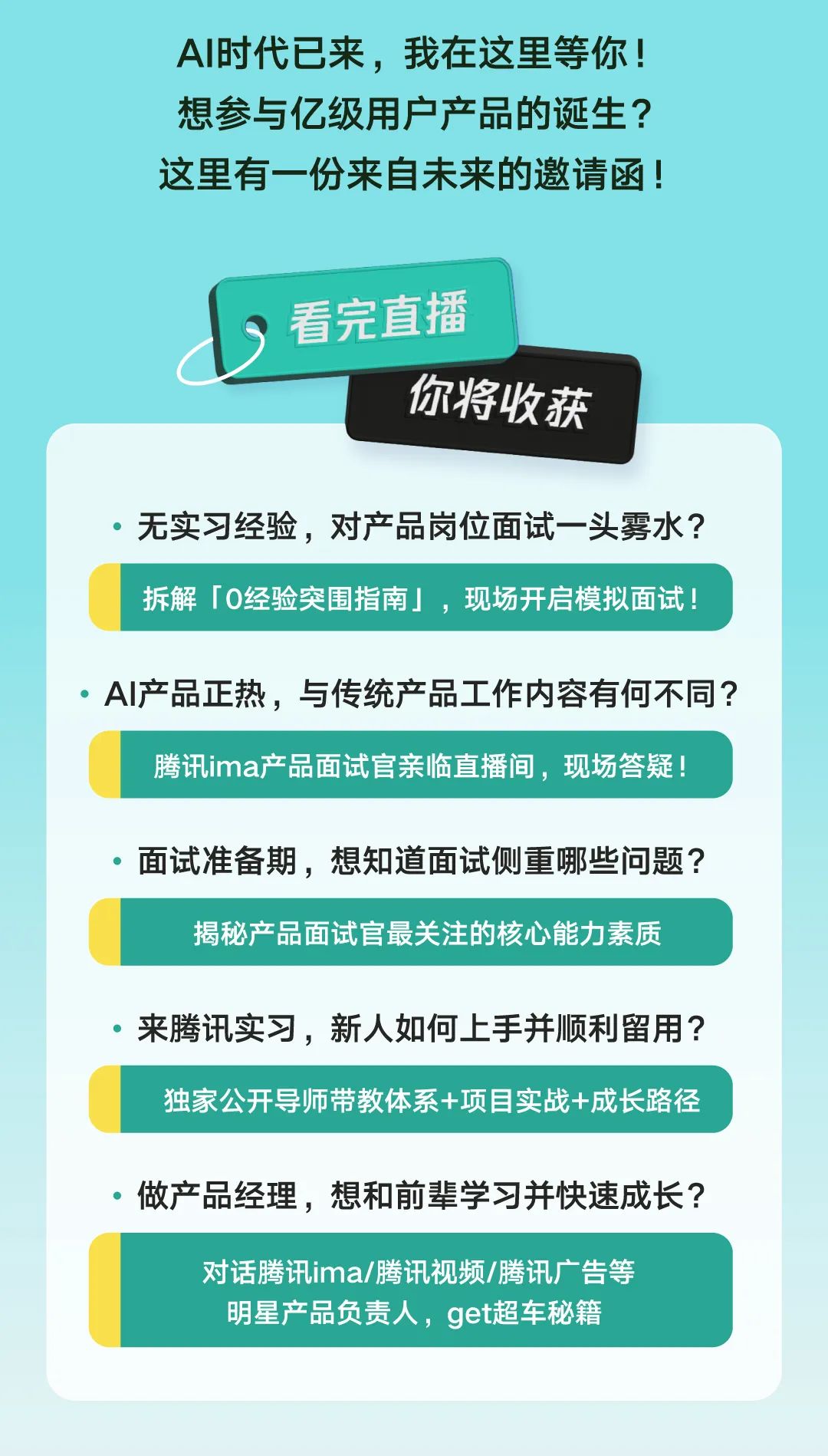 今晚19:30产品专场直播!腾讯2025实习生招聘火热进行中