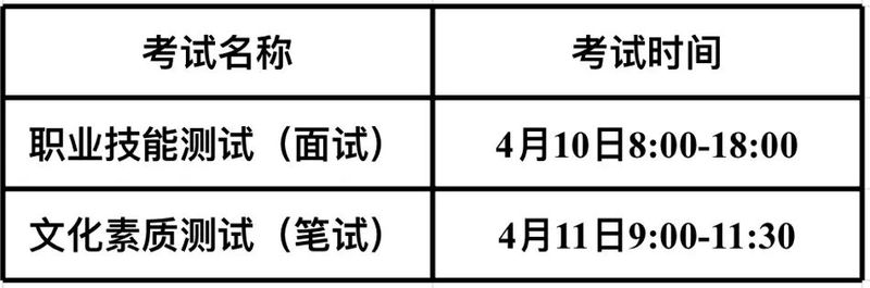 2.中等职业学校毕业生,采用“文化素质+职业技能考试”的考核方式。文化素质考试科目为语文、数学、英语三科,采用笔试考试,满分100分;职业技能考试包括专业能力测试和技术技能测试,满分100分。专业技能测试以教育部发布的中职专业教学标准中核心专业知识为基本依据,采用笔试考试,重点考察综合专业能力;技术技能测试以教育部发布的中职专业教学标准中核心技术技能为基本依据,以操作和面试考试为主,充分体现岗位技能、通用技术等内容。