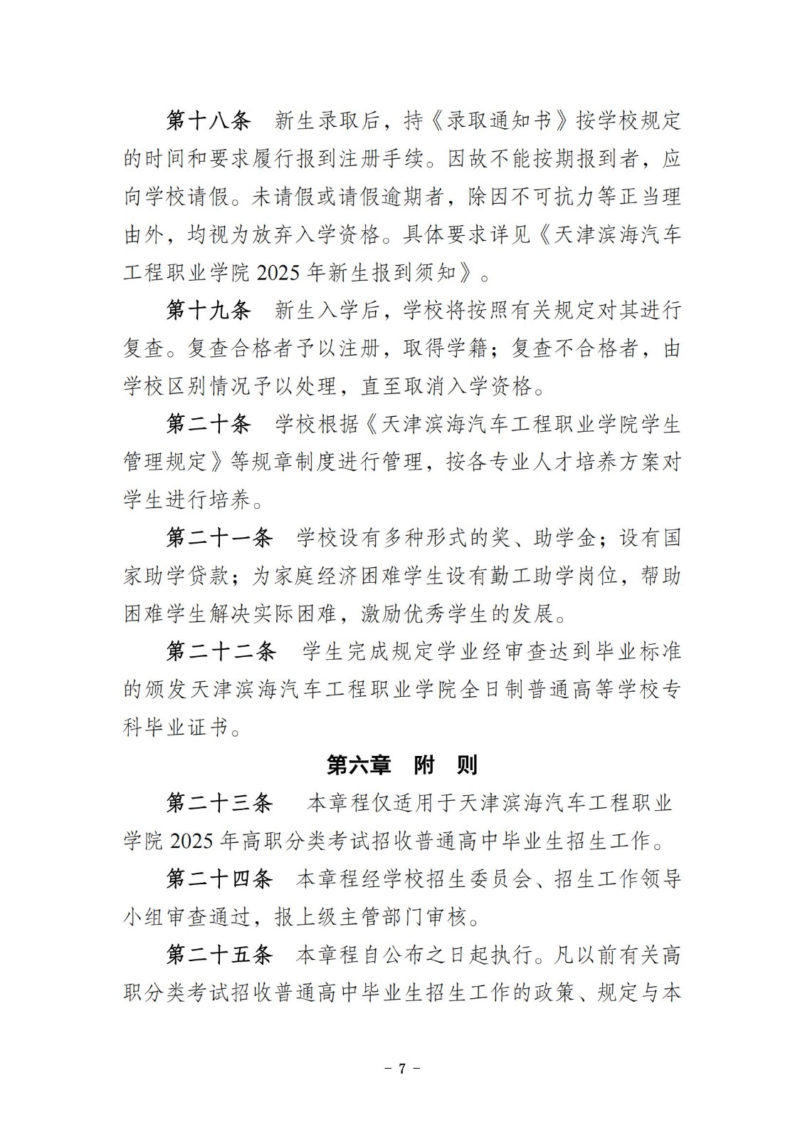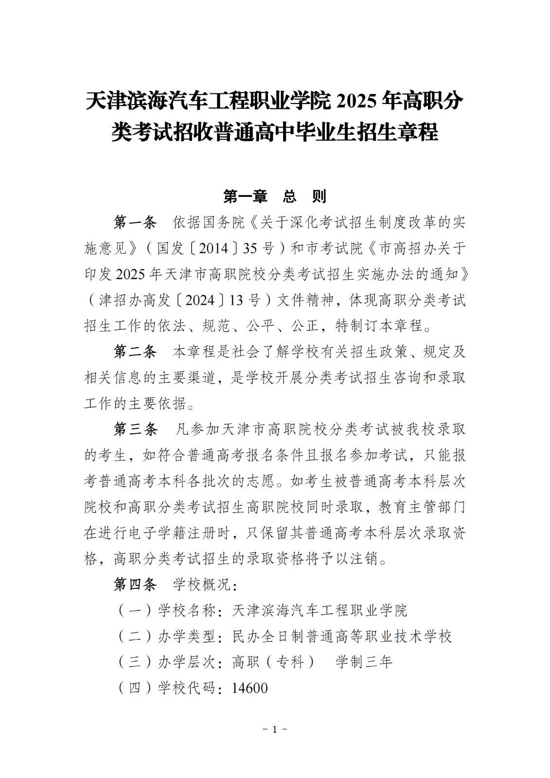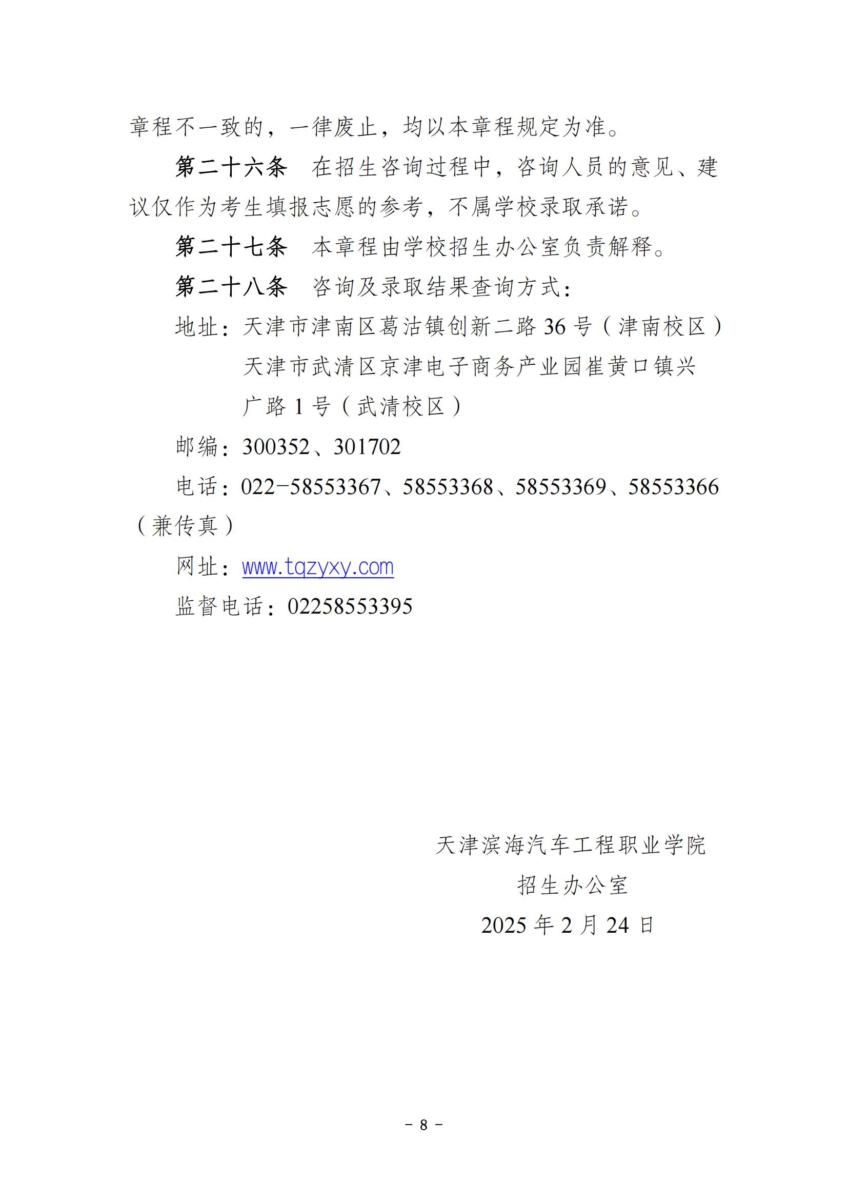天津滨海汽车工程职业学院2025年高职分类考试招收普通高中毕业生招生章程