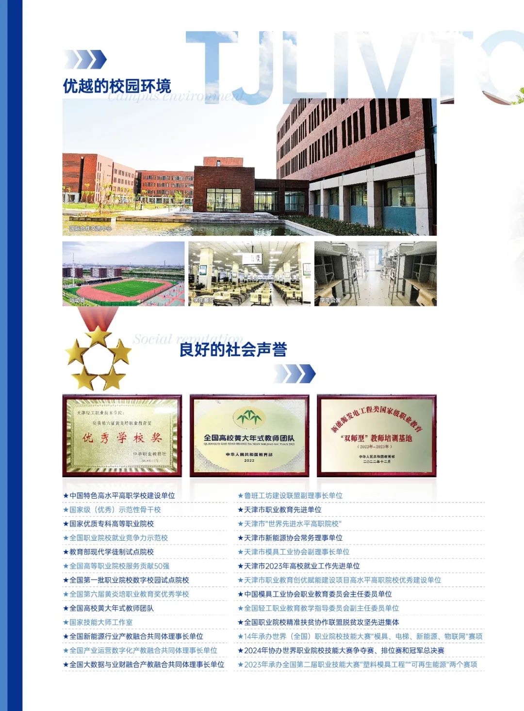 拥有国家级技能大师工作室、国家级职业院校教师教学创新团队、全国高校黄大年式教师团队、天津市技能大师工作室、天津市职业院校教师教学创新团队。自2008年以来,先后14年承办全国职业院校技能大赛相关赛项,2022年和2024年承办世界职业院校技能大赛——碳中和可再生能源工程技术赛项,2023年作为赛项保障单位保障中华人民共和国第二届职业技能大赛“塑料模具工程”“可再生能源”两个赛项,2024年协办世界职业院校技能大赛争夺赛、排位赛和冠军总决赛,并在冠军总决赛中荣获冠军(获奖学生获得本科院校保送资格)。近年累计获得省部级及以上教学成果奖30项,其中国家级特等奖1项,国家级一等奖2项,国家级二等奖3项。
