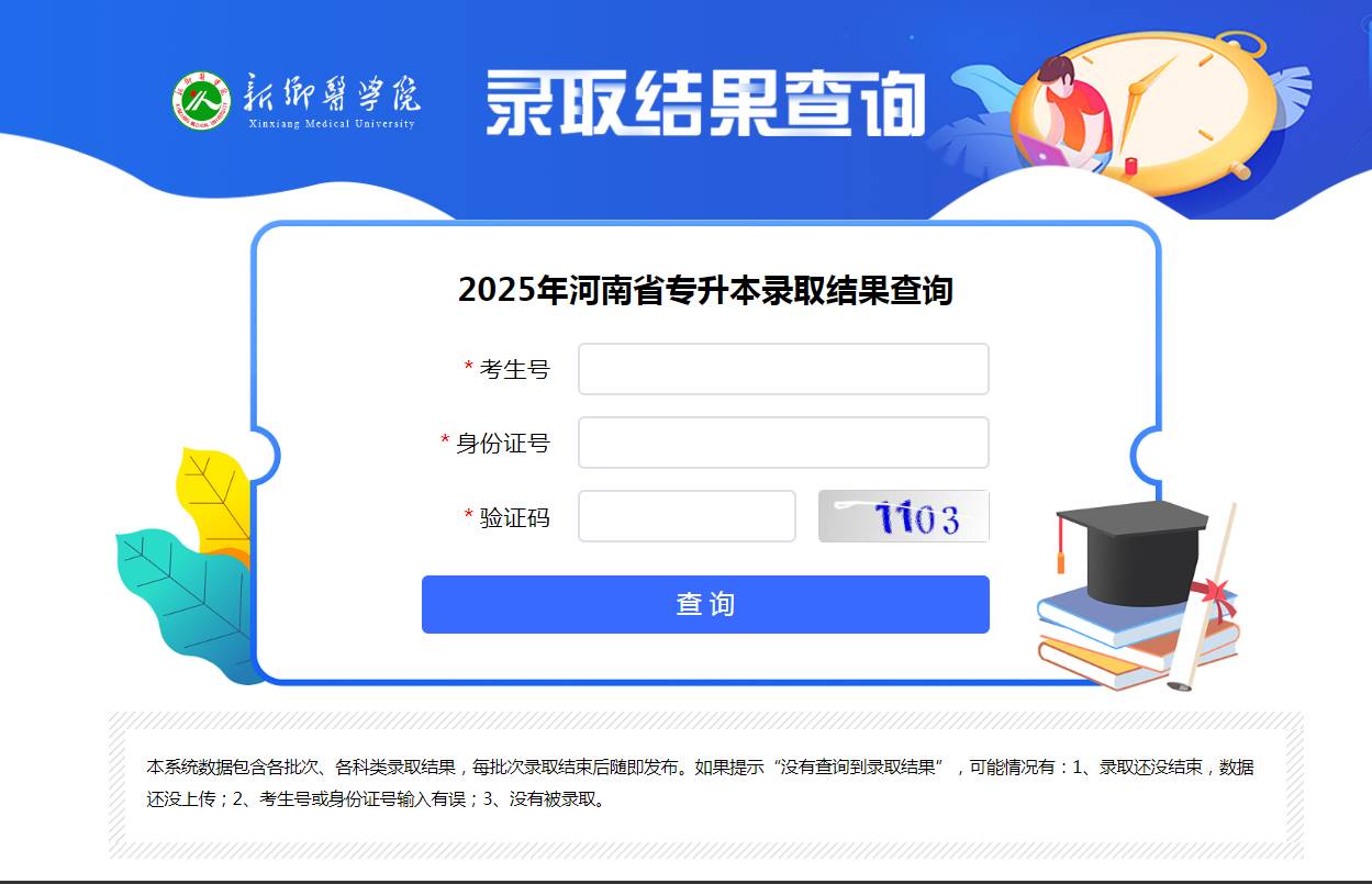 查询方式:1.登录新乡医学院招生信息网,点击“录取查询”,输入准考证号、身份证号和验证码即可查询。