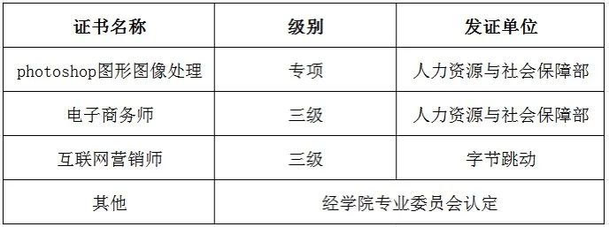 本专业设置科学合理的课程体系,培养学生掌握基本的思想政治理论知识、计算机、管理学基础等知识,重点要求掌握电子商务相关理论知识、专业知识与操作能力。
