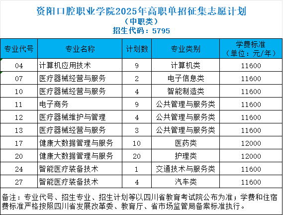 建议在平行志愿A院校位置选择“5795—资阳口腔职业学院”进行志愿填报,并勾选服从专业调剂,增大录取几率。