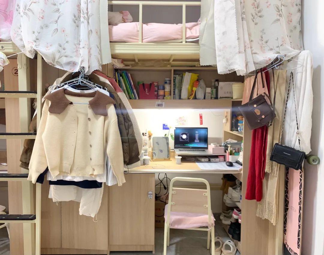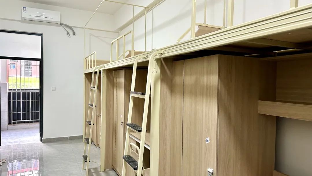 学校宿舍为6人寝,床铺长宽为195cm*90cm,上床下桌,学生公寓设施齐全,空调、热水、网络一应俱全。