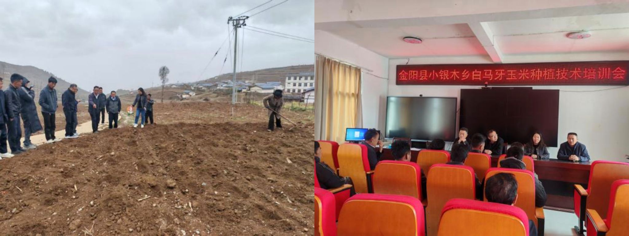 在小银木乡白马牙玉米传统种植区(海拔约2800米,日均气温-5至10℃),张军杰教授和刘汉梅副教授深入调研该品种特性及产业发展现状。通过现场培训方式,系统讲解了玉米高产栽培、病虫害防治等关键技术,并实地示范增密覆膜窝播技术,帮助农户有效应对低温气候影响,确保玉米苗齐苗壮。