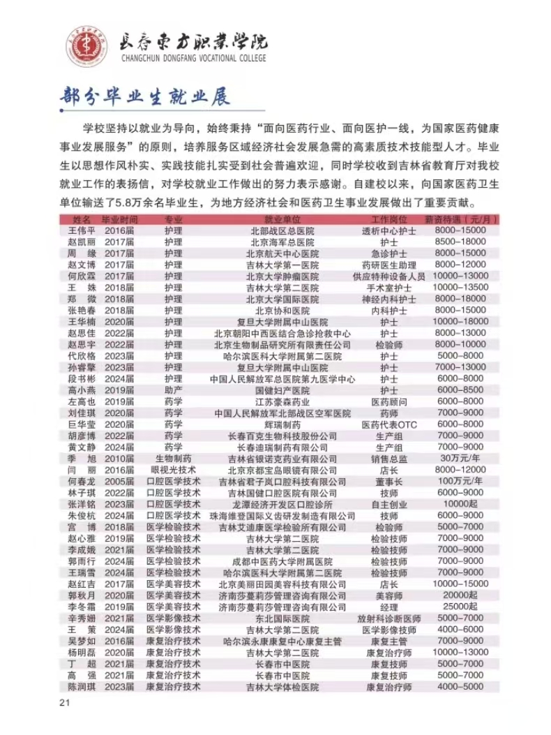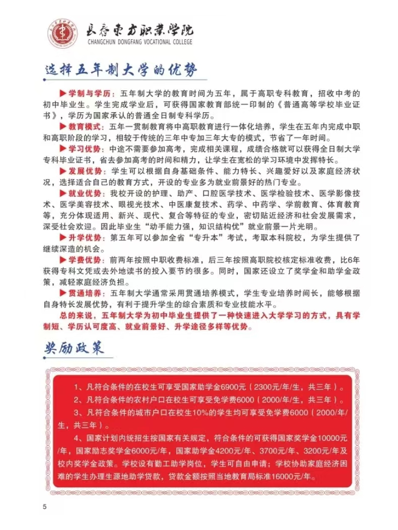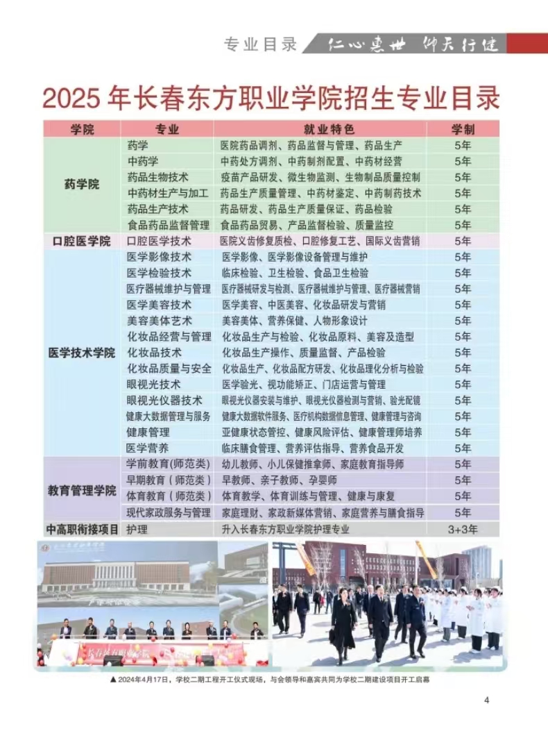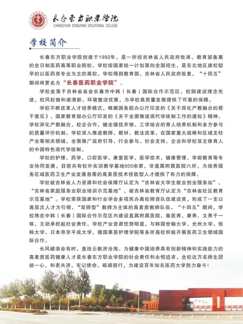长春东方职业学院2025年五年制招生简介