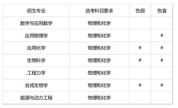 标记“#”的专业表示不招收患有相关色觉异常(俗称色盲、色弱)的考生;