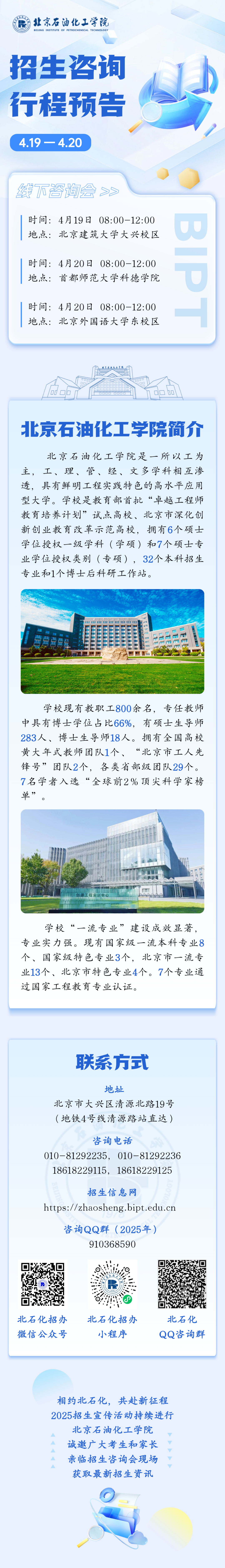 北京石油化工学院2025年招生咨询行程预告(4.19-4.20)