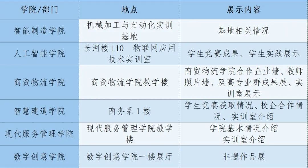 招生就业指导中心、教务处、学生处及6个二级学院32个专业老师将在学校第一报告厅设置咨询台,为各位考生及家长针对学校专业特色、升学就业、校企合作、招生政策等方面答疑解惑,期待大家的到来!