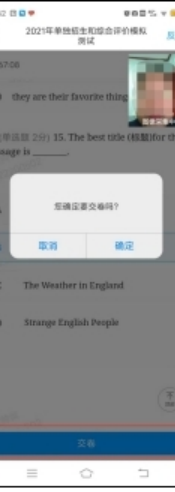 ★答题过程中,如果碰到图像采集窗口遮挡题干造成无法答题的情况,可以跳过此题,在最后的“交卷”页面进行答题(“交卷”页面会显示所有题目,也可以在“交卷”页面上进行答题)。