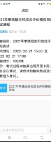 学校一般在测试科目开考前1个小时发起测试通知,考生登录系统后,点击通知,待测试时间到时即可进入测试。测试通知是进入测试的唯一凭证,请勿删除。