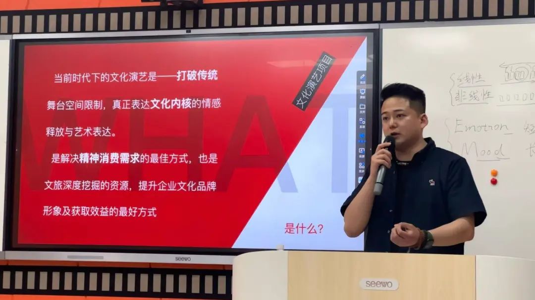 在柴彬老师的课前引导下,为大家介绍了文化演艺类项目包含实景演艺类、传统演艺类、沉浸式演艺类等,并不是简单的以演唱会形式展现出来。柴彬老师首先介绍了作为演艺管理者的基础工作内容,通过文艺工作者的视角一步一步将大家带入主题,讲述了什么是文化演艺类项目以及管理的基本技巧。