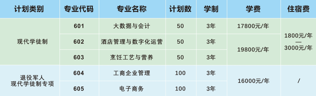 根据《广东省教育厅关于做好2024年省高职教育现代学徒制试点工作的通知》、《广东省教育厅广东省退役军人事务厅关于开展2024年退役军人现代学徒制专项试点工作的通知》粤教职函〔2024〕5号等文件精神,我校2024年现代学徒制试点自主招生共2种招生类型,分别为普通现代学徒制试点和退役军人现代学徒制专项试点,计划招生350人。