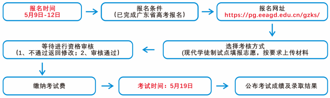 考试时间:5月19日,最终以我校招生信息网公布为准。具体考核方式及考试相关安排另行通知,请关注我校招生信息网http://www.gdjdxy.edu.cn/。
