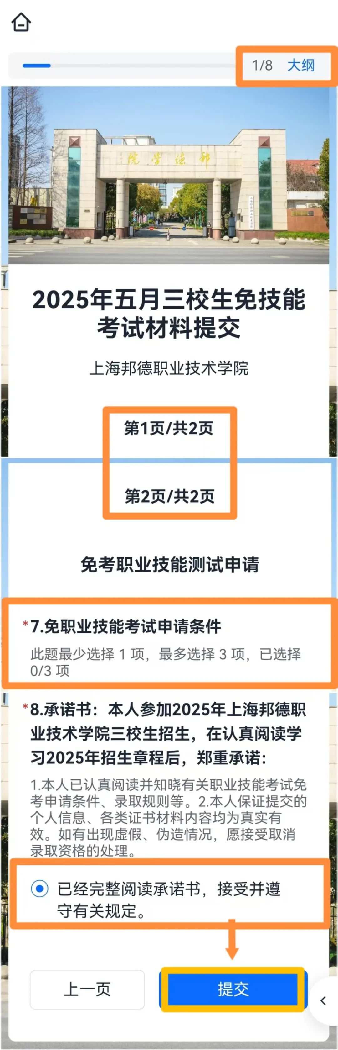 (一)请考生认真对照我校《2025年上海三校生招生章程》所规定的“免考职业技能测试”申请条件,准备相应材料上传,原件自行留存备查;