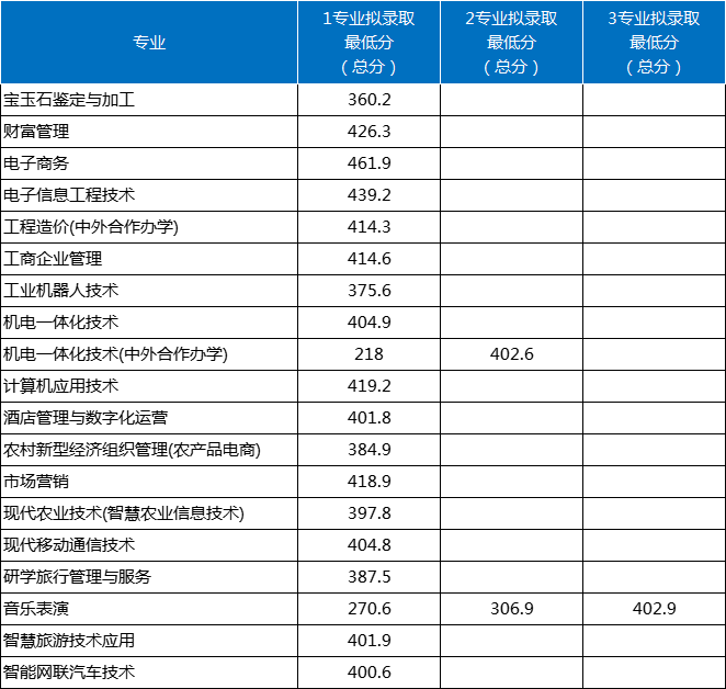 按照郑州信息科技职业学院2025年单独考试招生章程有关规定,现将拟录取结果进行公示,考生可在微信公众号“郑州信息科技职业学院招生办公室”或者学校招生官网(网址:https://hnou.open.ha.cn/zxzsw/index.aspx),查看本人拟录取专业。 各专业录取最低分见下表: