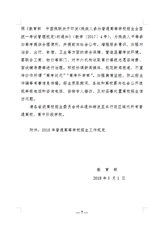 文件原文及附件:教育部关于做好2018年普通高校招生工作的通知.doc