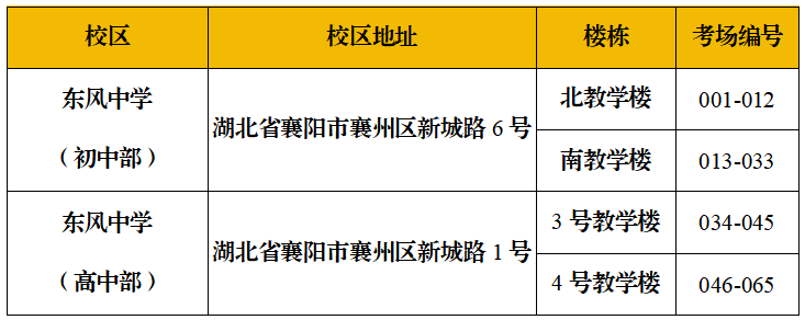 2.本次考试考场设在东风中学,考生请在考前熟悉考场位置,开考后,迟到考生一律不得进入考场。考场分布如下: