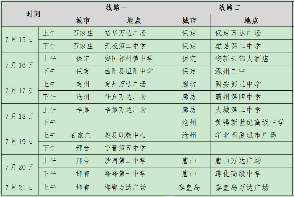 2.深入各地高招咨询会:7月15日至7月21日,学院将分派两组教师奔赴各地24场咨询会进行面对面咨询服务,欢迎广大考生和家长朋友们到现场咨询。