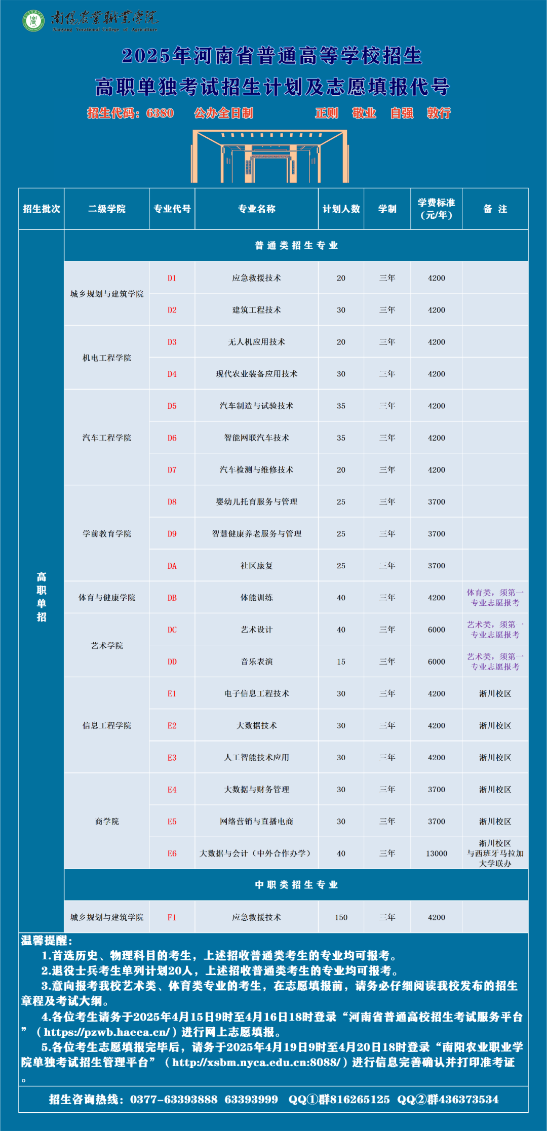 南阳农业职业学院高职单独考试招生相关信息分别在学校微信公众号、学校官网、招办微信公众号、学校招生信息网同步公布。