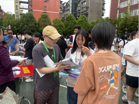 【招生巡展小组在泸州为学生发放招生宣传手册】