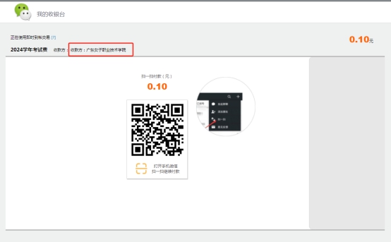 (三)用微信或支付宝扫码进行支付(请确认收款方是:广东女子职业技术学院)