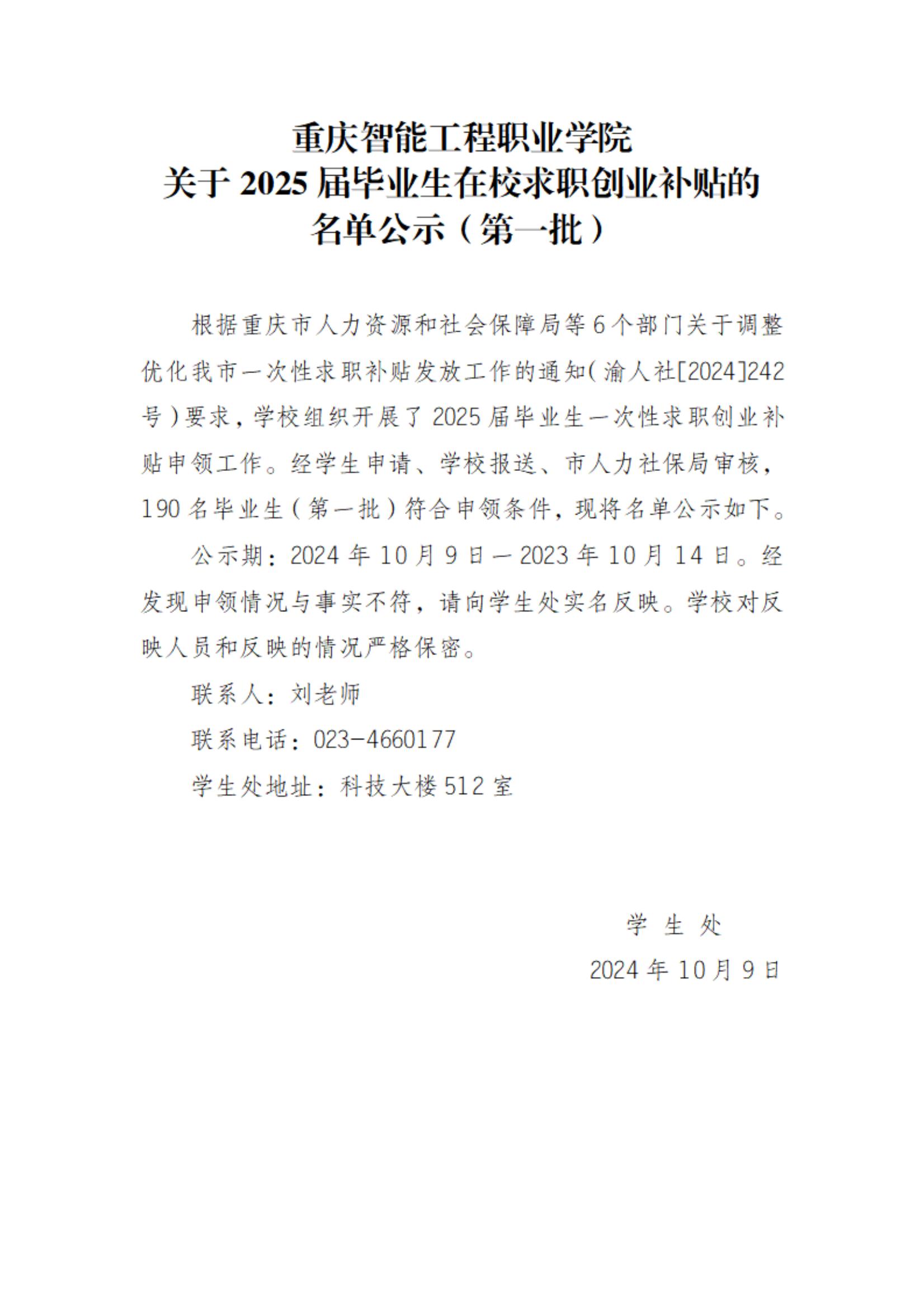 关于2025届毕业生在校求职创业补贴的名单公示(第一批)