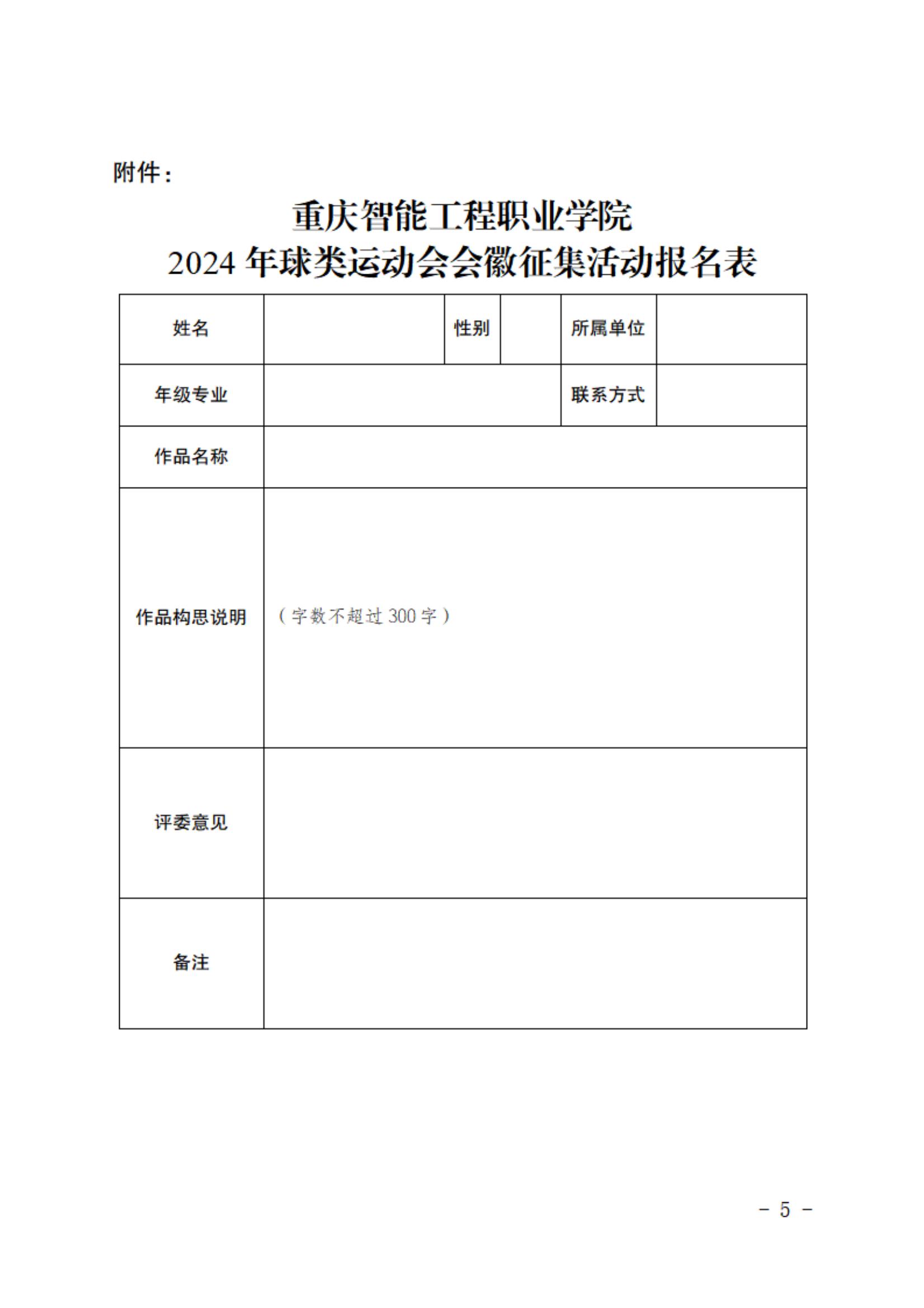 附件下载:重庆智能工程职业学院2024年球类运动会会徽征集活动报名表