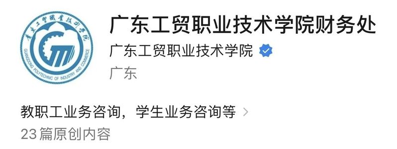 1.关注广东工贸职业技术学院财务处公众号(搜索“广东工贸职业技术学院财务处”或扫下图二维码);