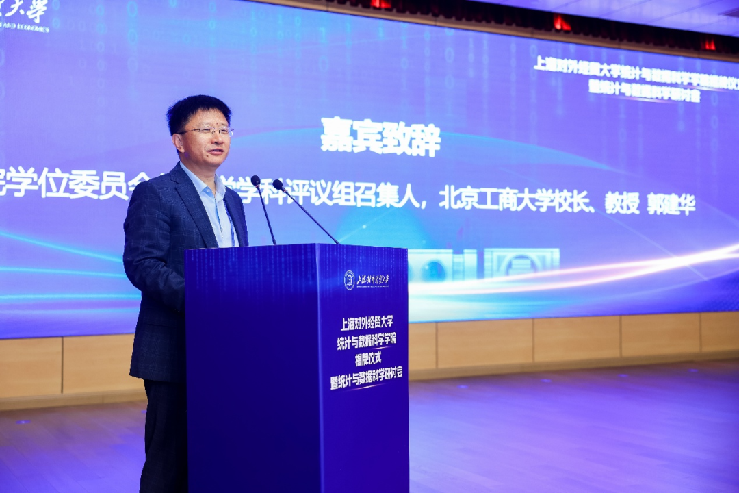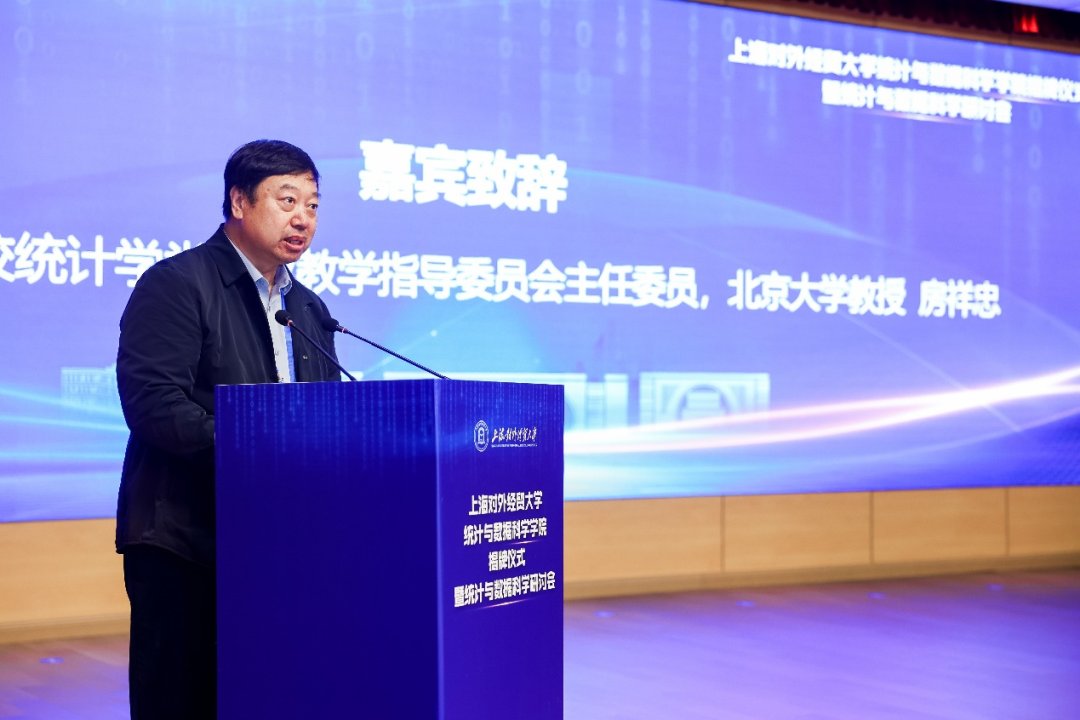 祁明代表学校向出席会议的嘉宾和师生们表示欢迎,向长期以来关心支持学校发展的专家学者表示感谢。他介绍了学校的发展历史与办学特色,以及近年来学校围绕服务国家战略和上海区域发展,在学科建设、人才培养、社会服务等方面取得的显著成绩。对学院在学科建设取得的重大突破以及促进学科交叉融合、支撑传统学科转型升级、创新数字经济人才培养模式等方面做出的积极贡献表示充分肯定。他表示,统计与数据科学学院的更名是深入学习贯彻习近平总书记考察上海重要讲话精神、服务国家重大战略需求的有力实践,也是主动适应时代发展需求,推进落实学校综合改革,积极优化布局交叉学科的重要举措。他对统计与数据科学学院未来建设发展,提出三点希望。一是要积极探索数智时代创新人才培养模式,加强学生数据科学素养和实践能力的培养,深化政产学研合作,为大数据战略实施和“数字中国”建设提供人才支撑。二是要聚焦人工智能研究,依托上海科技资源优势和产业基础,努力形成一批具有影响力的高水平科研成果,为更好地服务上海“五个中心”建设提供智力支持。三是要持续优化学科发展布局,整合多学科优势资源,推动统计学科与其他学科深度融合,不断提高统计与数据科学人才自主培养的质量。
